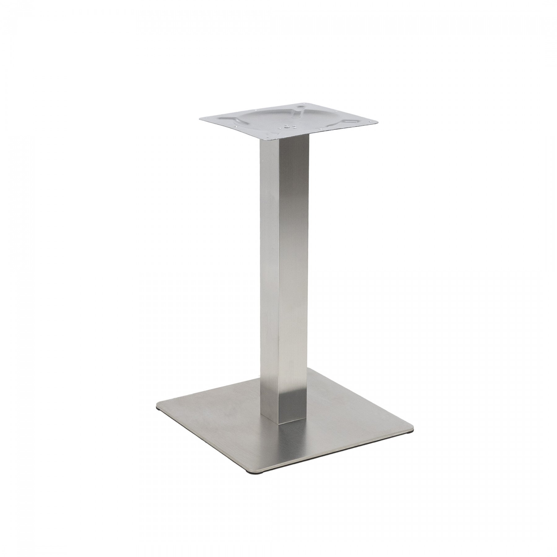 Опора состоит из 3-х частей: площадка 294х294, к которой крепится столешница, труба 80х80 h-615, нижнее основание 450х450. Рекомендуемая статическая нагрузка на подстолье -125 кг, Рекомендуемый размер столешницы - до d1000мм или 1000х1000.