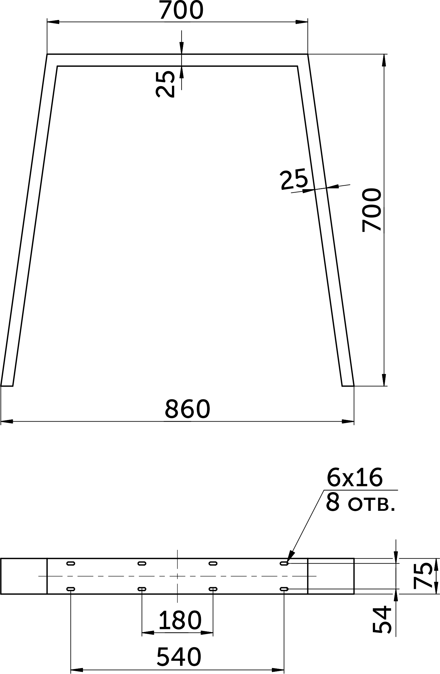 Размер профиля: 75х25 мм