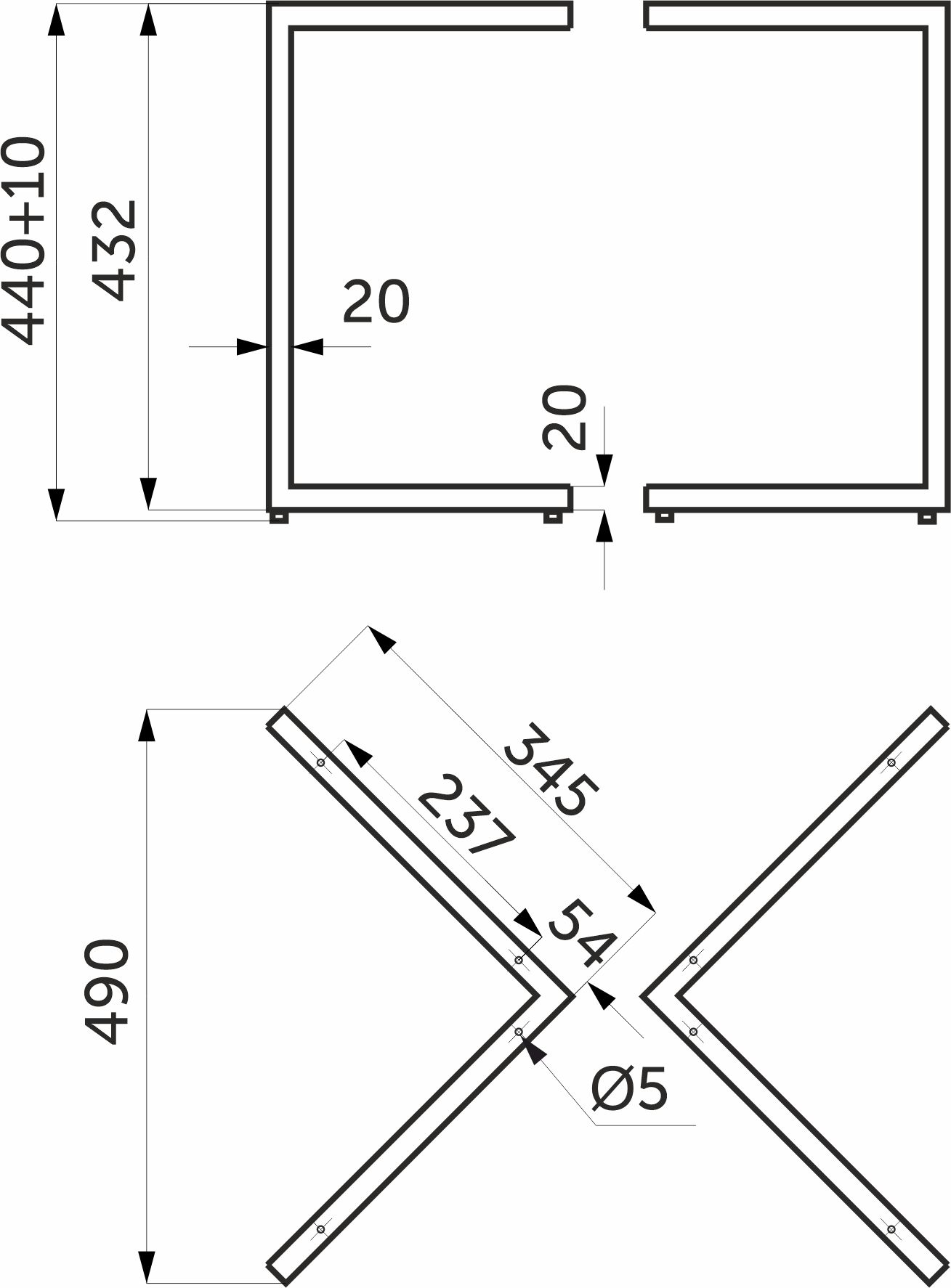 Подстолье TRES h432, черный AKS (1 компл. = 2 шт.)