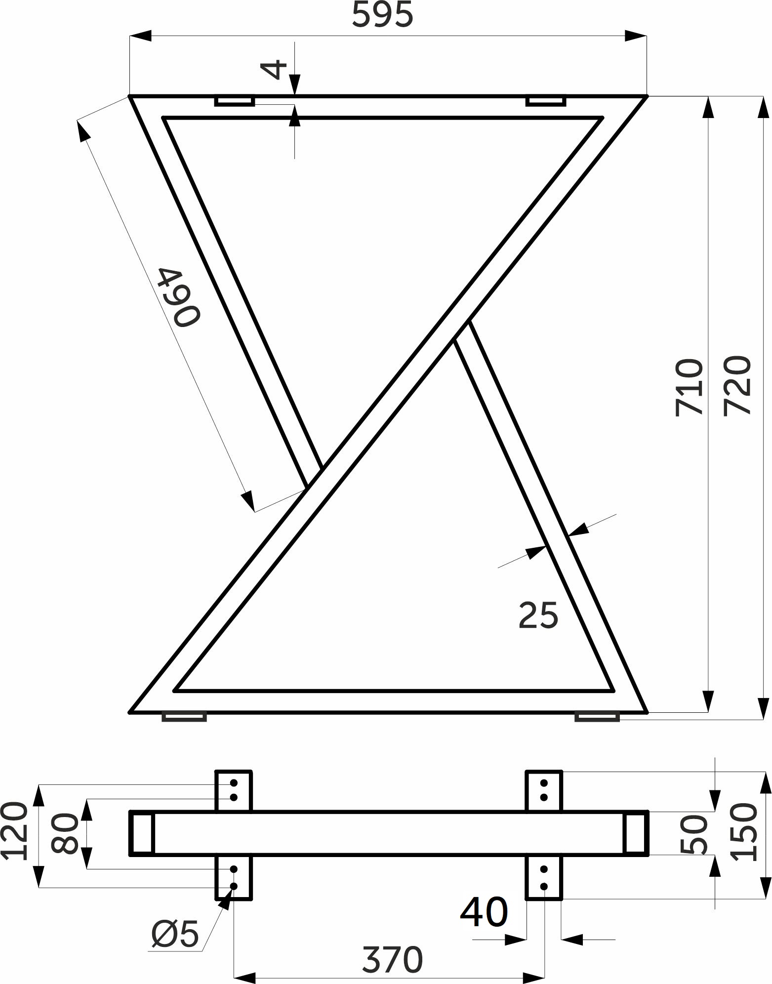 Подстолье изготовлено из металлического профиля 50*25мм. Толщина профиля 1,5мм. Покрытие - порошковое, черный муар. Рекомендуемая статическая нагрузка на 1 комплект (2 шт подстолья) - до 300 кг.