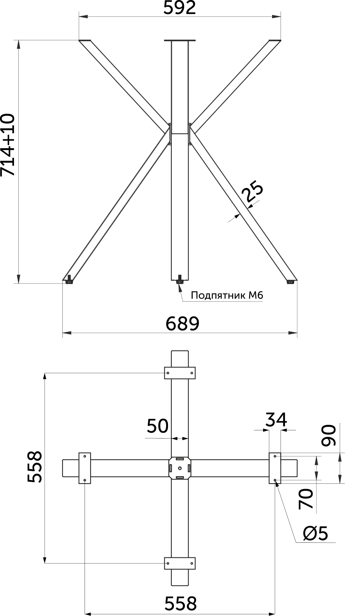 Высота подстолья: 714 мм + регулировка уровня (идет в комплекте) до 10 мм