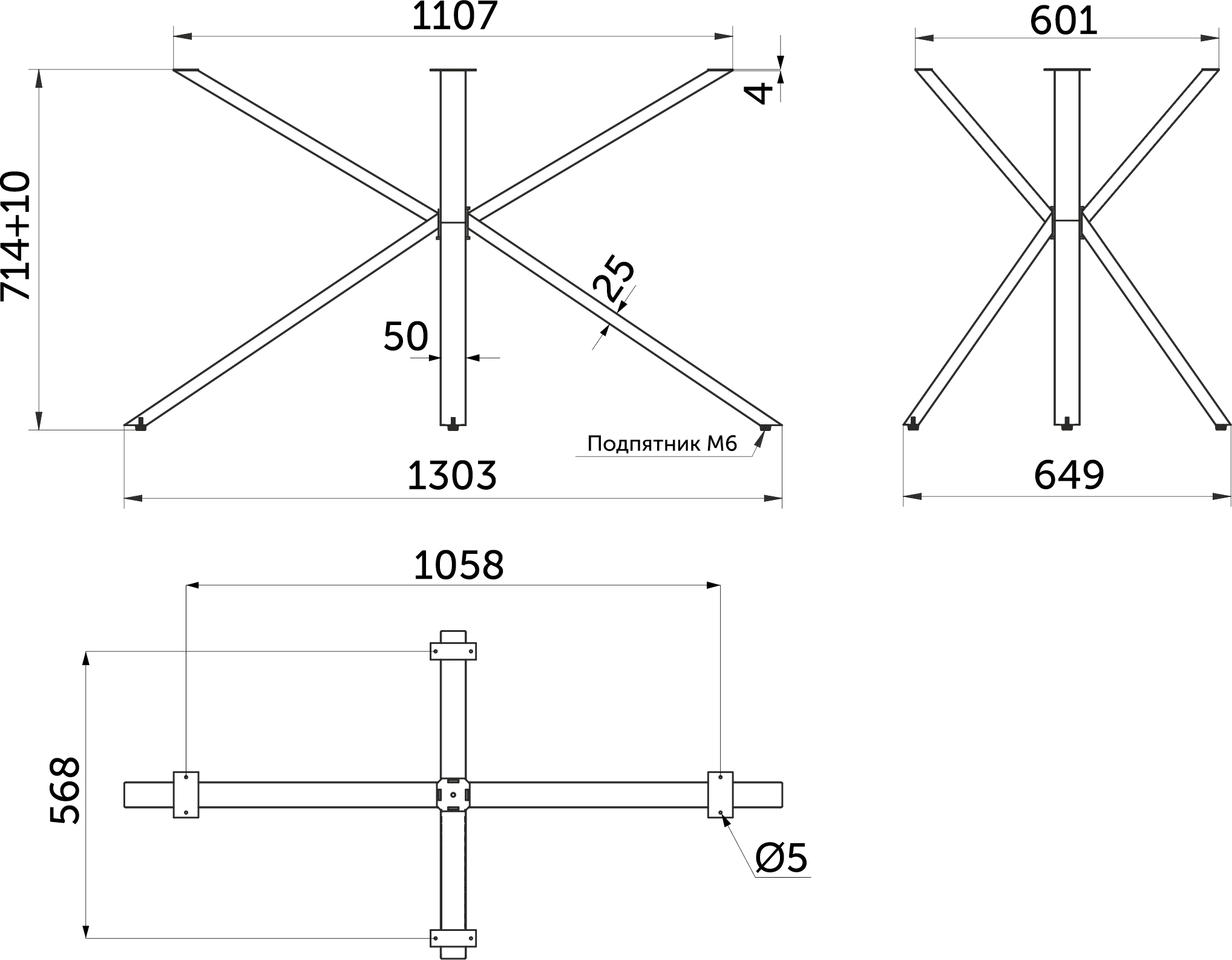 Высота подстолья: 714 мм + регулировка уровня (идет в комплекте) до 10 мм
