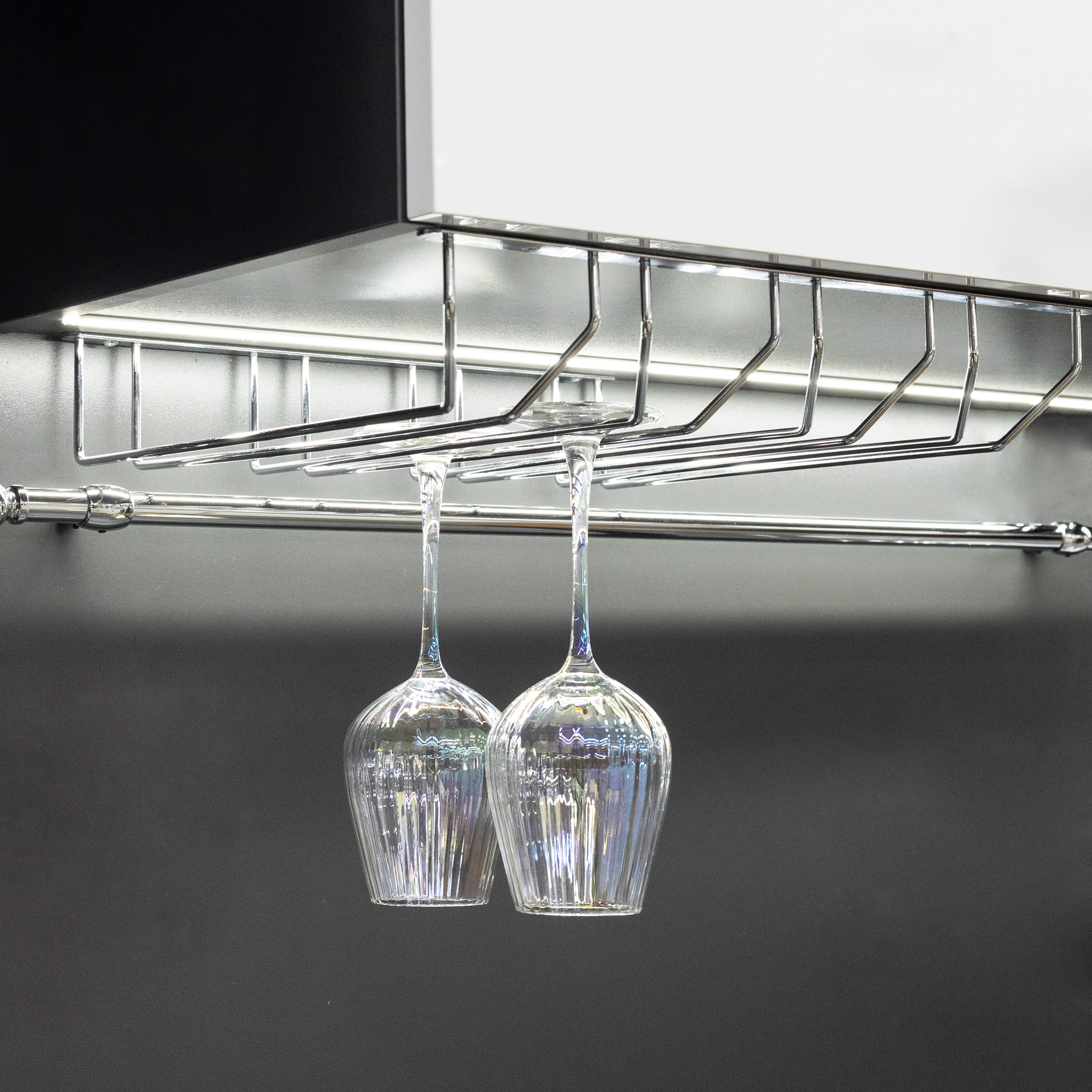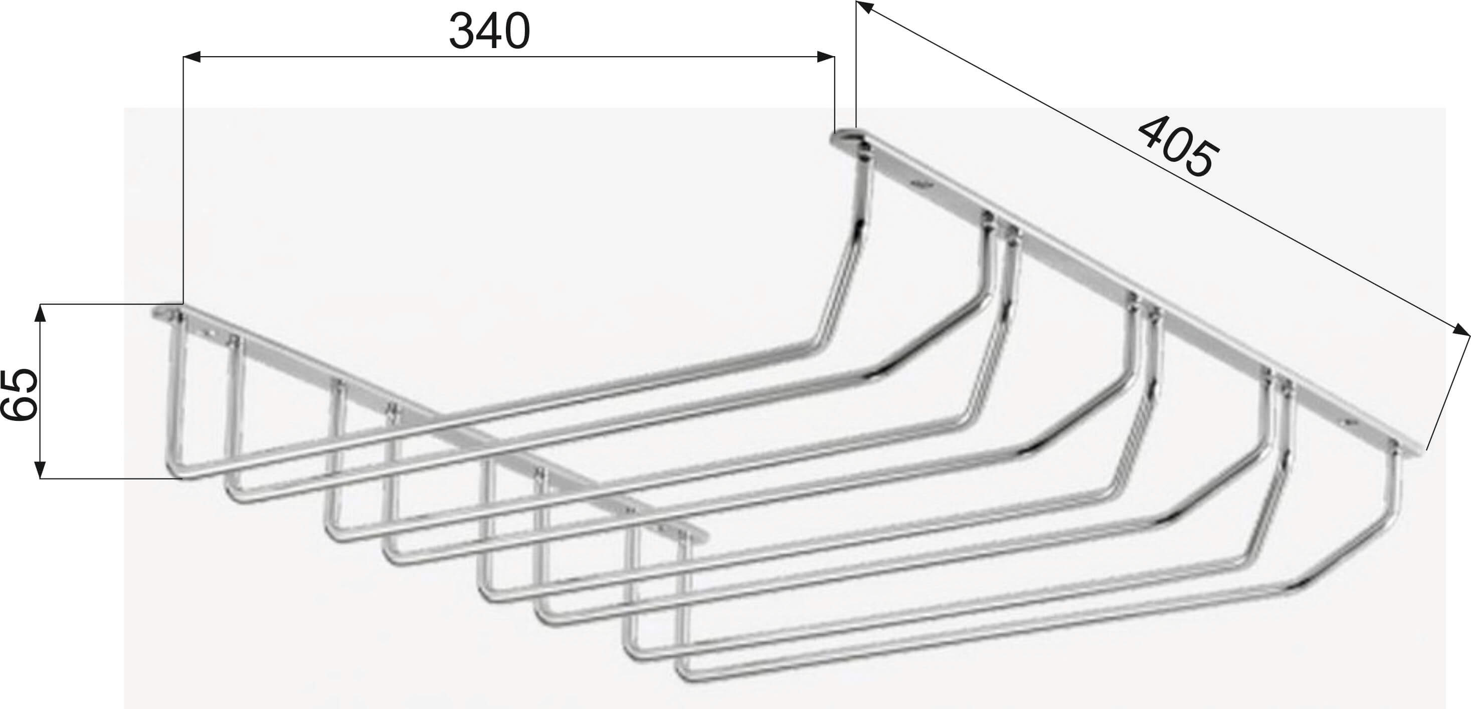 Повеска крепится саморезами на горизонтальную поверхность, на прутьях размещаются бокалы (ножками вверх)