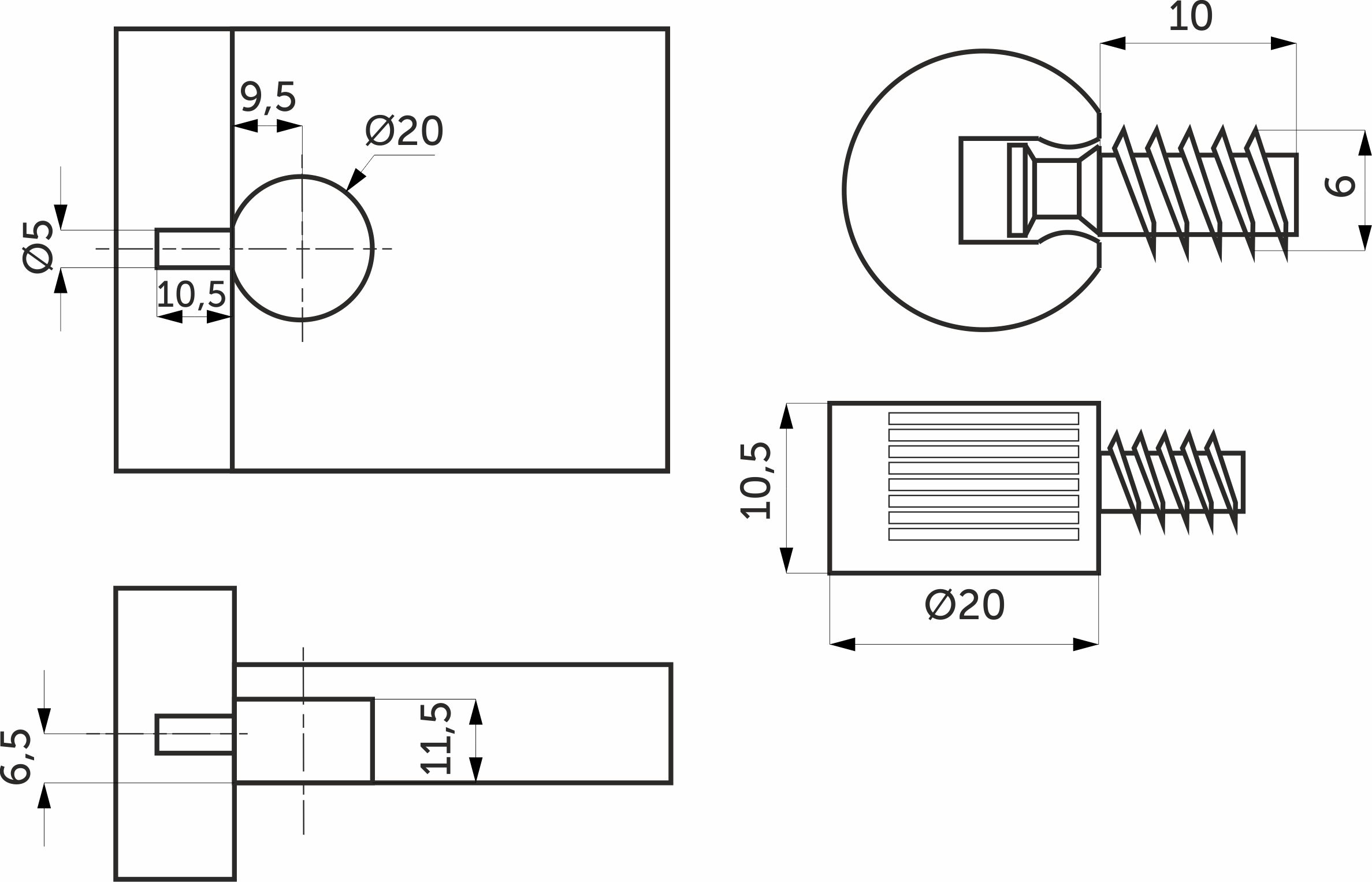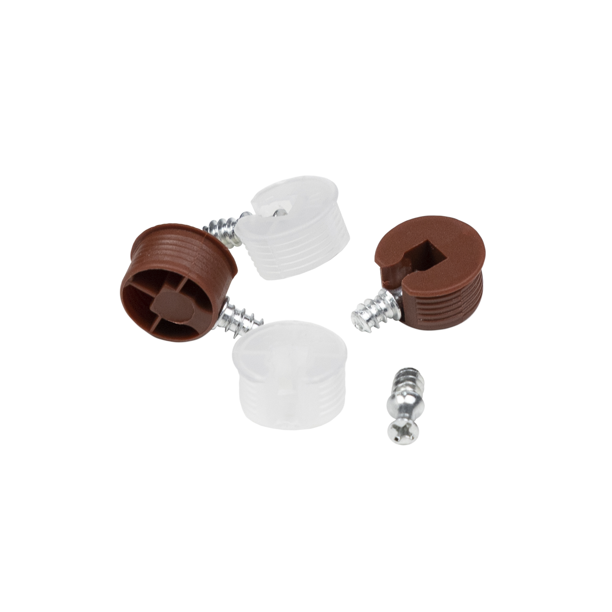 Полкодержатель d20 со штоком-евровинтом 6*10 - это упрощенный вариант всем хорошо известной эксцентриковой стяжки быстрого монтажа или Rafix, которая чаще всего используется как полкодержатель, но у описываемого аналога отсутствует эксцентриковая фиксация. Данные полкодержатели представлены в трех цветах: белый, коричневый и прозрачный.