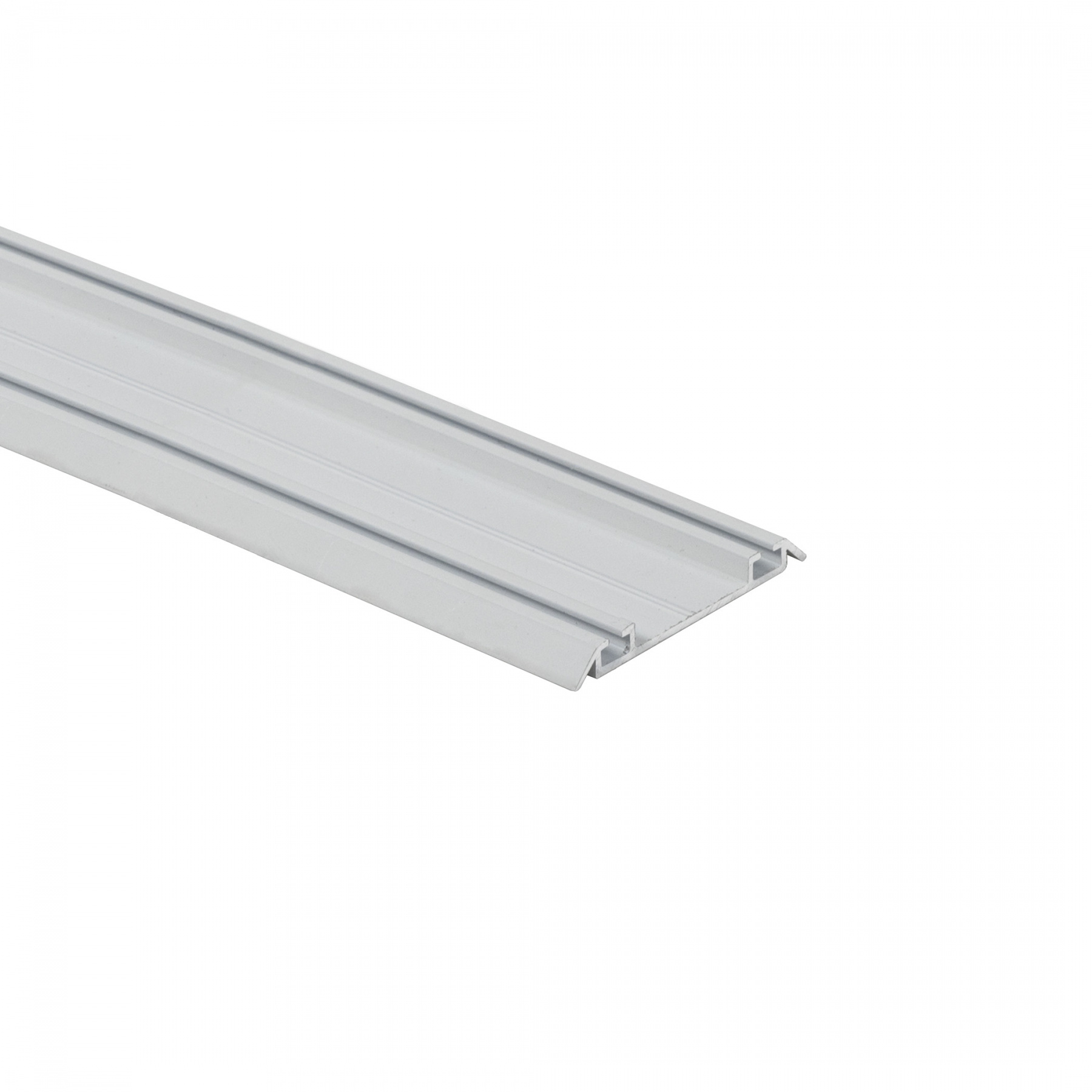 По нижней направляющей двигаются ролики. Она крепится на нижней панели шкафа и обладает высокой прочностью для того, чтобы хорошо удерживать форму при нагрузке.