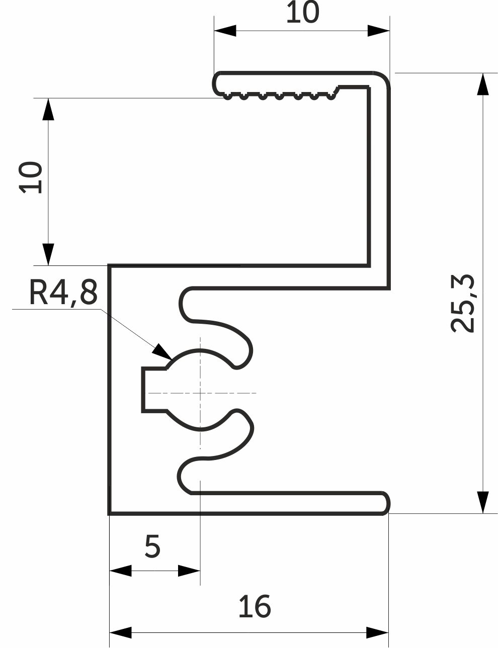 Материал: алюминий . L=6,0 м. Профиль соединяет между собой в верхней части двери дверное полотно и ролики. В специальный паз монтируются ролики, которые после устанавливаются в верхнюю направляющую.