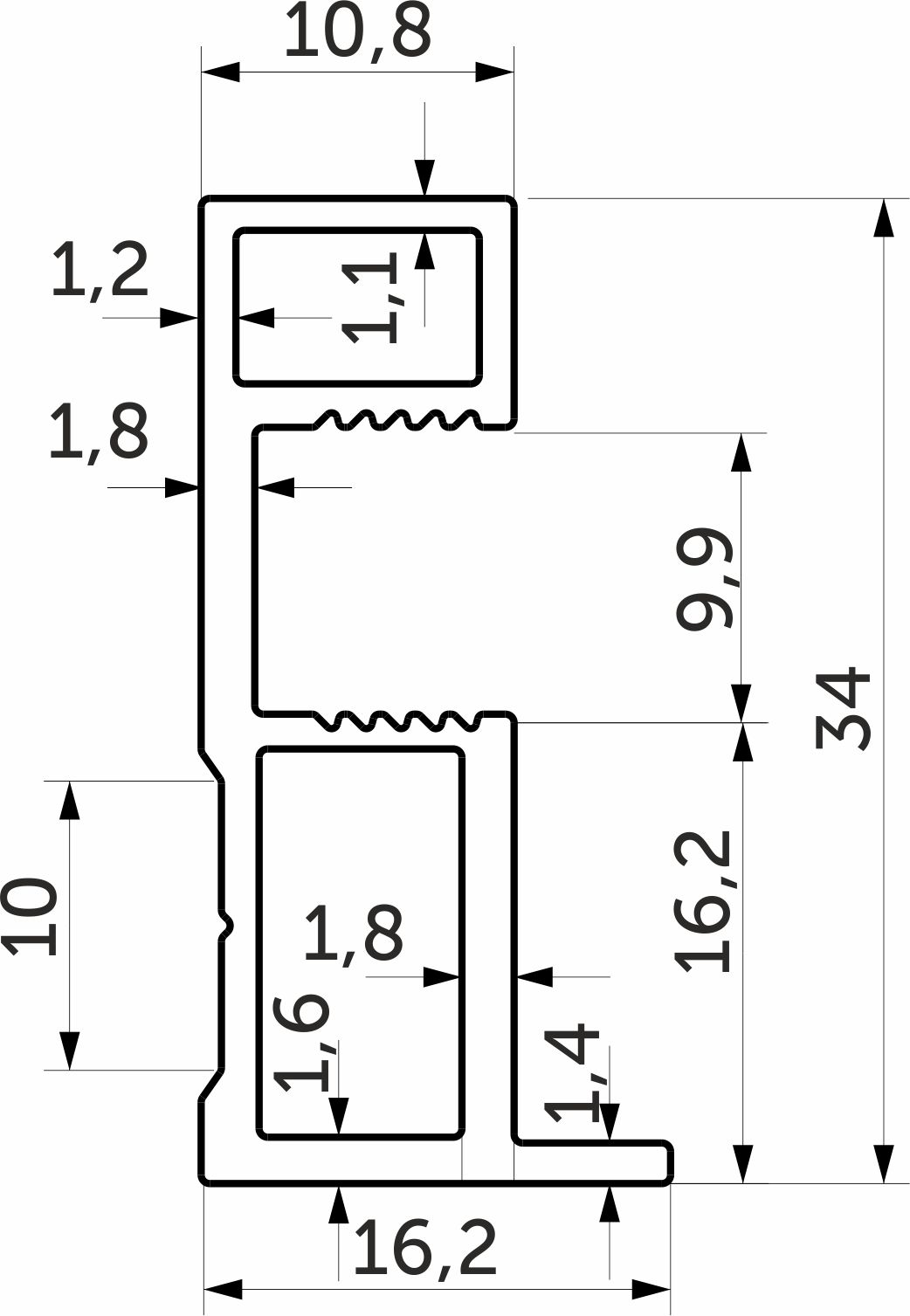 Вертикальный профиль "кваттро" с квадратной видимой частью 11 мм используется в качестве вертикального профиля ручки в раздвижной узкой системе шкафа-купе. Защищает торцы дверного полотна от соприкосновения с боковыми стенками шкафа и дополнительно фиксирует ЛДСП, зеркало, стекло, другие декоративные элементы.