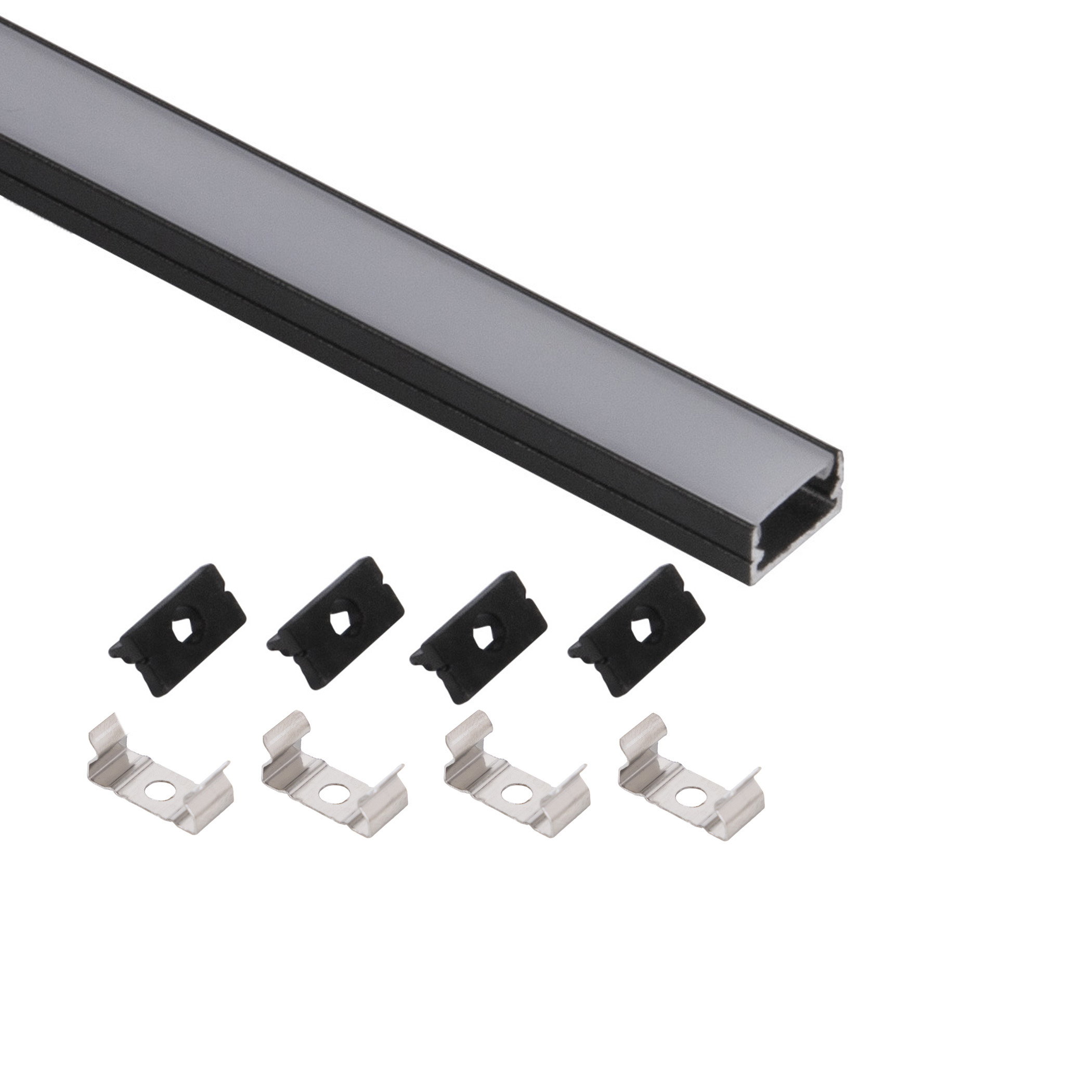 Профиль алюминиевый накладной SIRIUS-1407S с экраном, цвет черный, 2м, AKS (в комплекте 4 заглушки и 4 крепления)