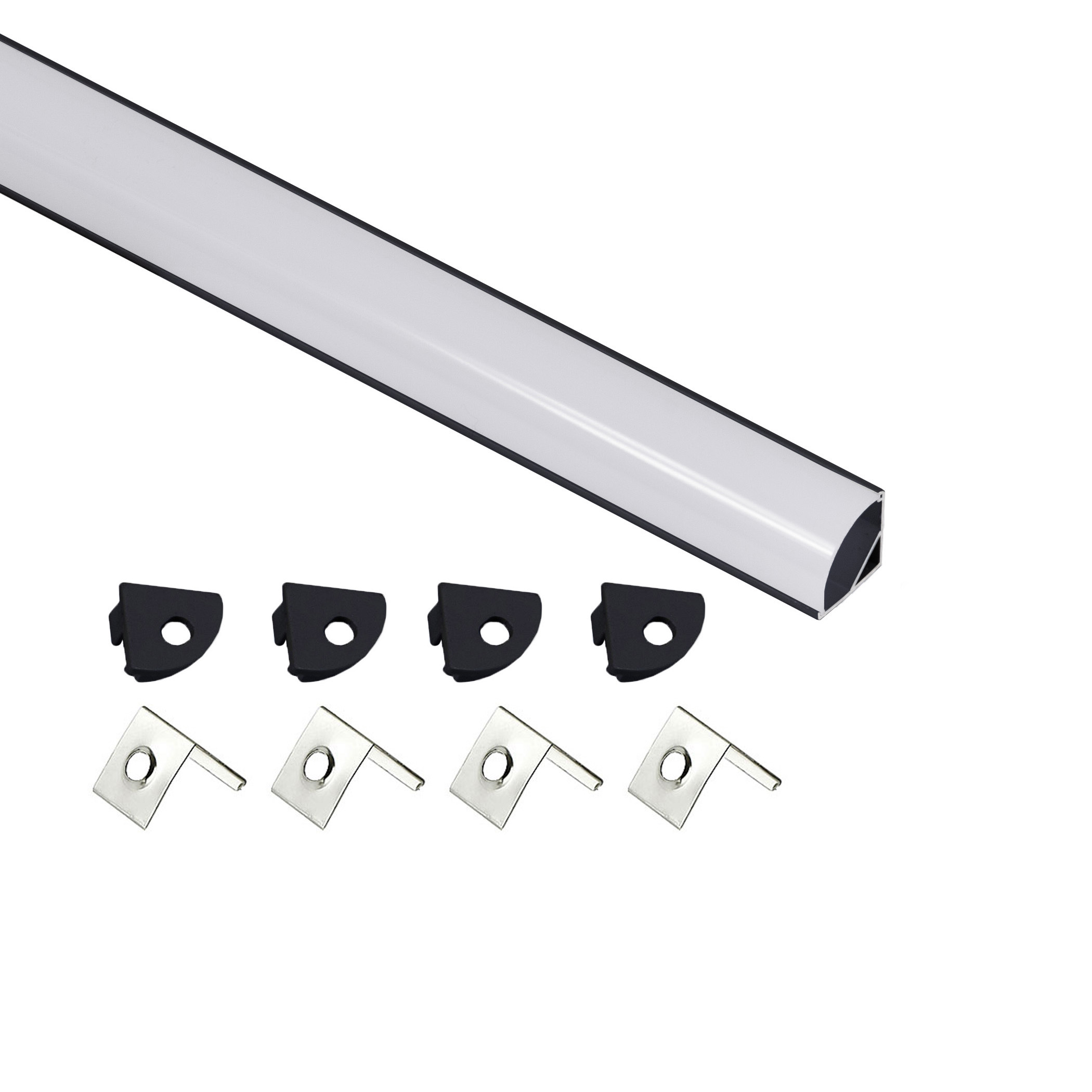 Профиль алюминиевый угловой ORION-1616C с экраном, круглый экран, цвет черный, 2м, AKS (в комплекте 4 заглушки и 4 крепления)