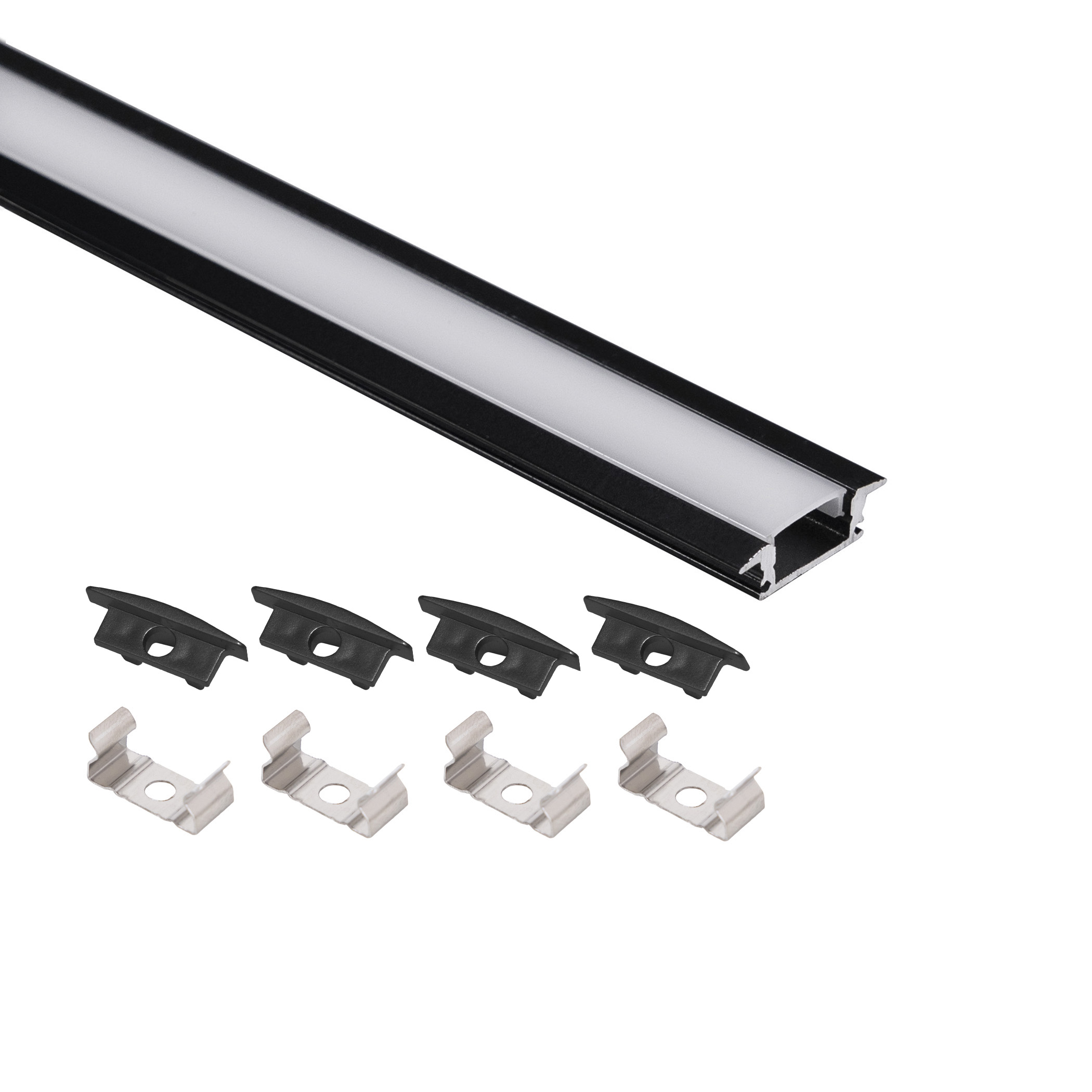 Профиль алюминиевый врезной LIRA-1707 с экраном, цвет черный, 2м, AKS (в комплекте 4 заглушки и 4 крепления)