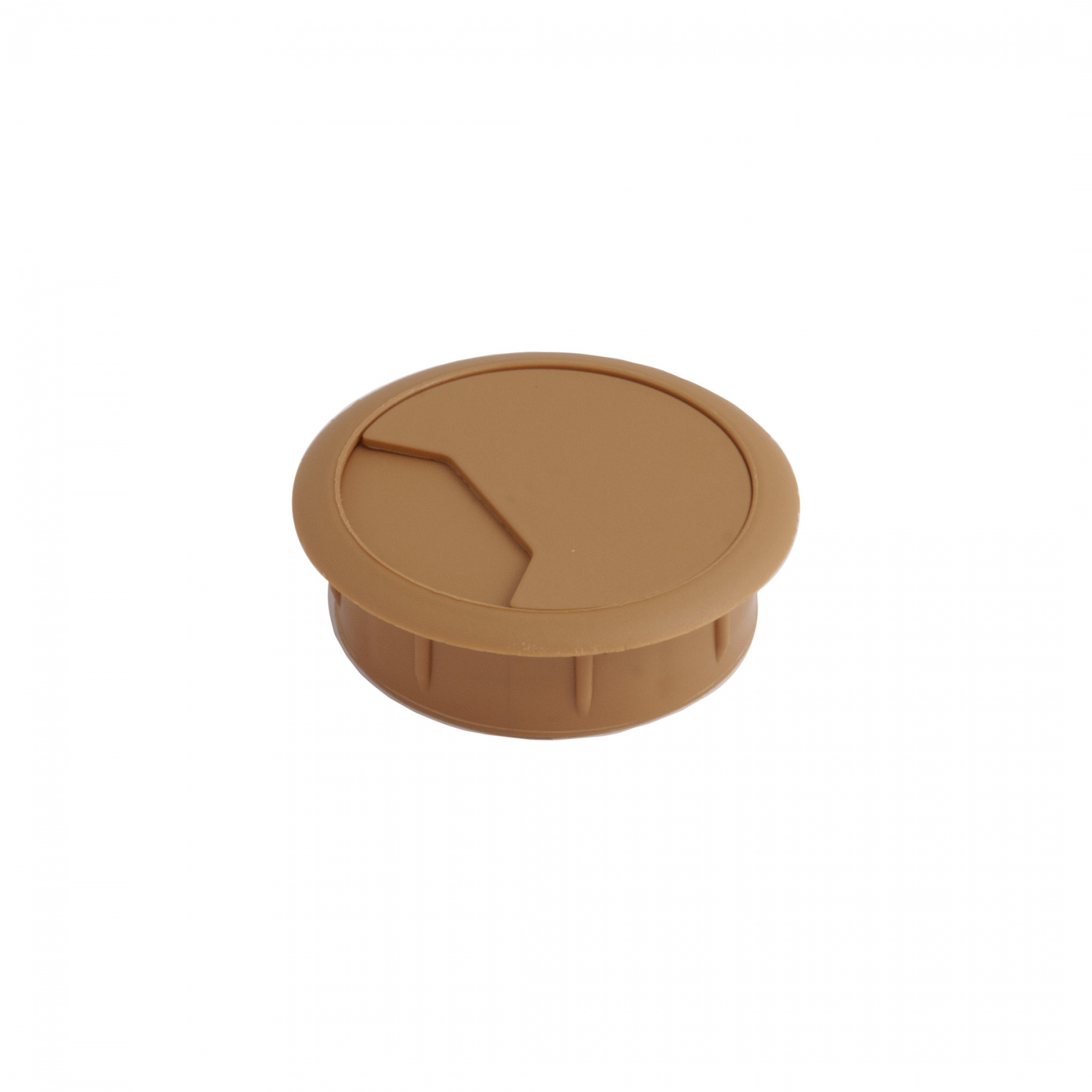 Пропуск кабельный пластиковый врезной. Габаритный диаметр изделия 70мм, размеры отверстия в столешнице - d60мм. Внутри пропуска есть съемная крышка, которая частично либо полностью закрывает отверстие для кабеля.