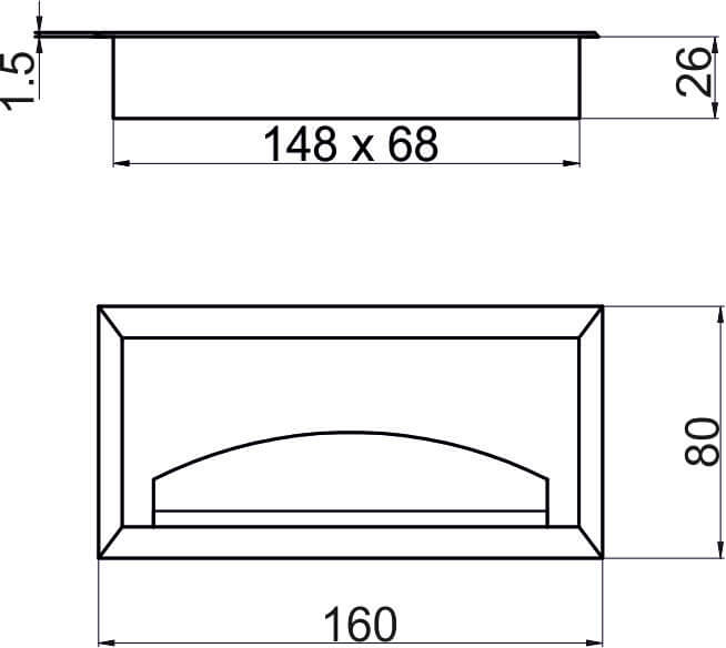 Пропуск кабельный врезной. Габаритные размеры изделия 80х160 мм, размеры отверстия в столешнице - 67х148мм. Внутри пропуска есть щетка + откидная крышка, которая частично закрывает отверстие для кабеля.