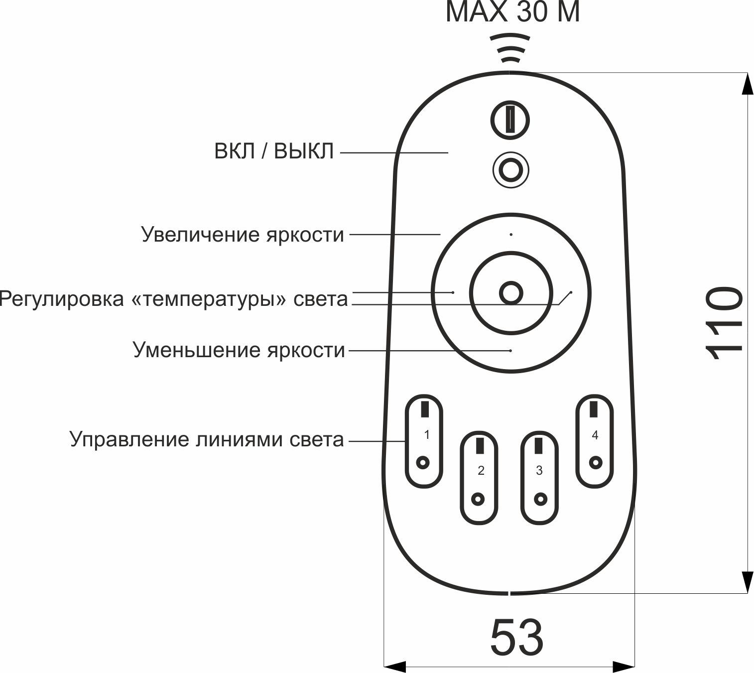 Пульт для управления светодиодной лентой BICOLOR может управлять 4-мя контроллерами 81 796 BICOLOR. Для синхронизации с контроллером перед тем, как подать на контроллер питание, необходимо выбрать на пульте линию (одну из 4х), на которую хотим запитать, нажать на «I», после подать питание на контроллер и трижды быстро нажать на выбранной линии повторно кнопку «I». Если все сделано верно, лента несколько раз замигает. Для того, чтобы синхронизировать с несколькими контроллерами, эту операцию необходимо провести со всеми контроллерами поочередно, лишь меняя линию на пульте, при этом каждый раз необходимо отключать все остальные контроллеры кроме того, который хотим синхронизировать. Для того, чтобы разорвать сопряжение между пультом и контроллером, проделывается аналогичное действие, только нажать на «I» необходимо пять раз в течении 3х секунд. Степень защиты IP20.