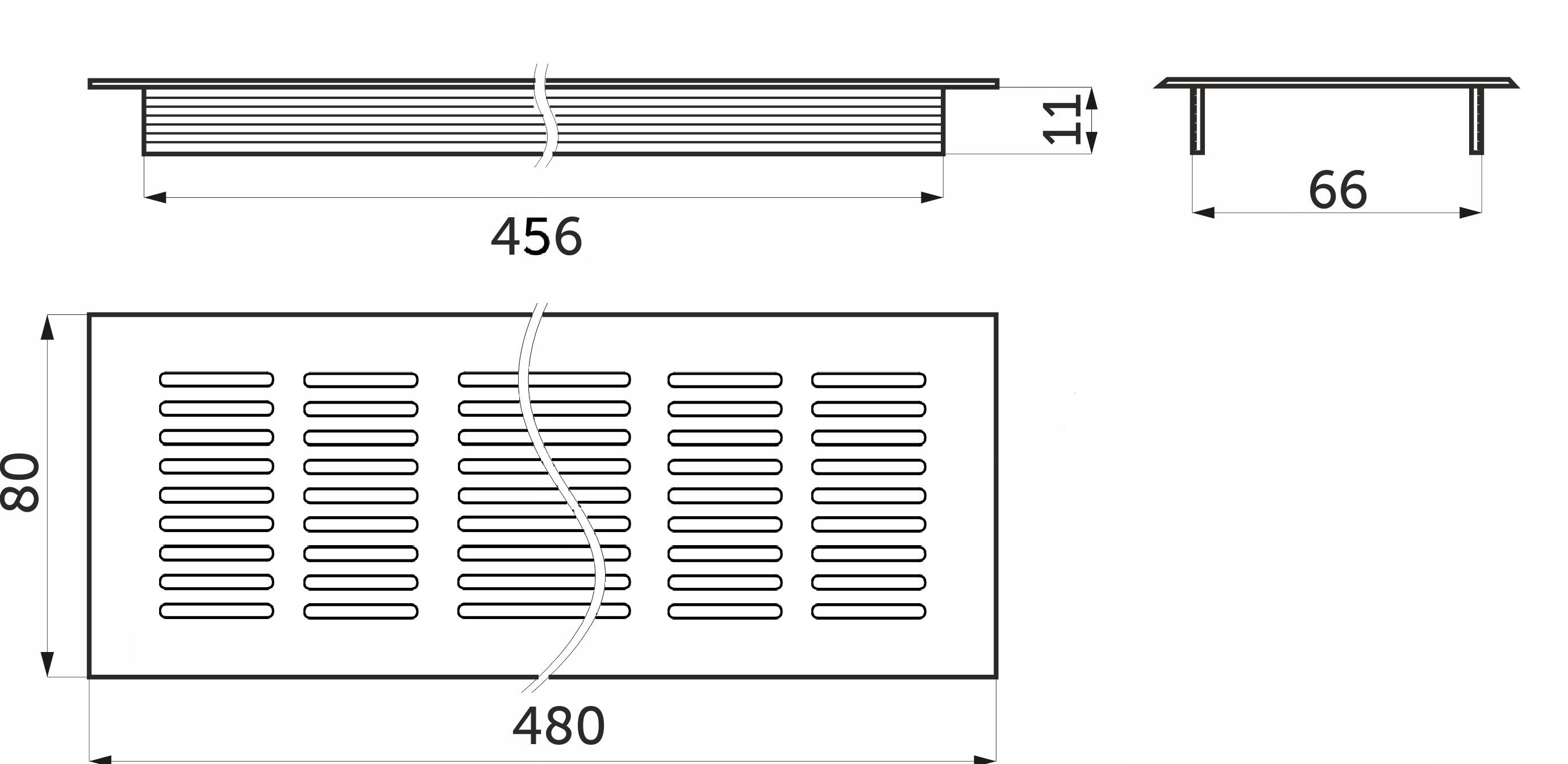 Решетка вентиляционная 480х80мм черная алюминий AKS
