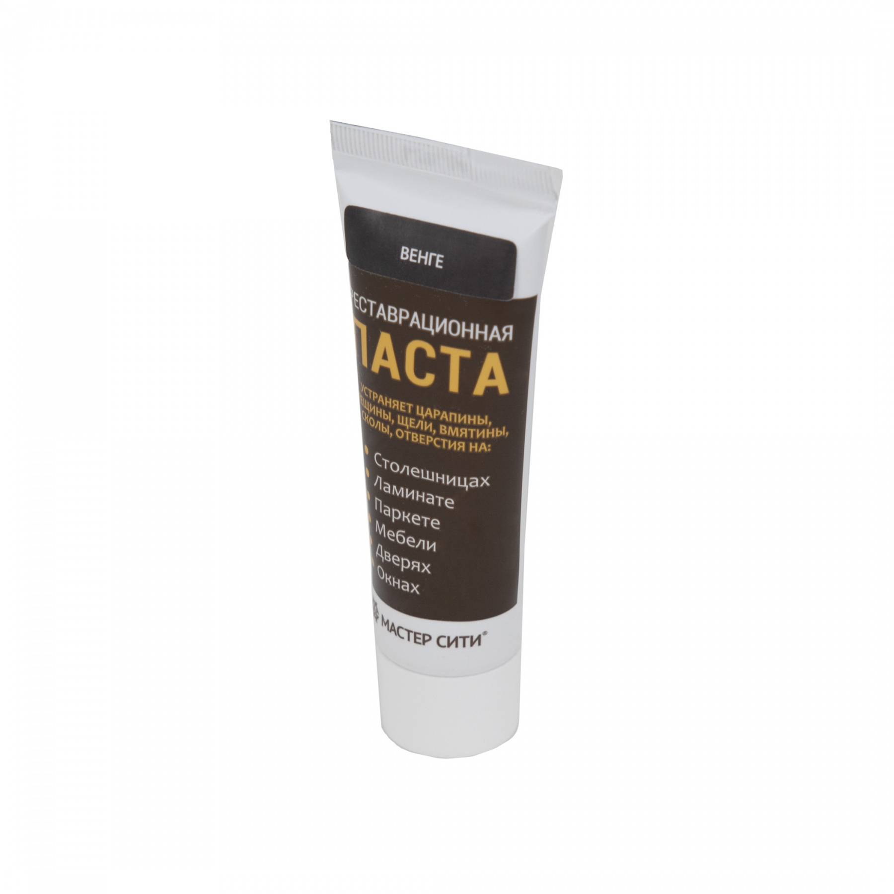 ПАСТА мебельная реставрационная для заполнения и выравнивания средних и больших сколов (в т.ч. и угловых), вмятин, трещин, отверстий на деревянных, пластиковых и поверхностях из искусственного камня (мебель, двери, окна, столешницы, полы, искусственный камень), подверженных интенсивной эксплуатации. Способ применения: 1) Подкрасить края повреждения маркером. При создании текстуры поверхности с помощью маркера можно изобразить поры с помощью острого угла шпателя; 2) Нанести шпателем (входит в комплект). При нанесении слоями дать возможность высохнуть предыдущему слою. Время полного высыхания около 20 минут; 3) Излишки удалить шпателем или стальной ватой.