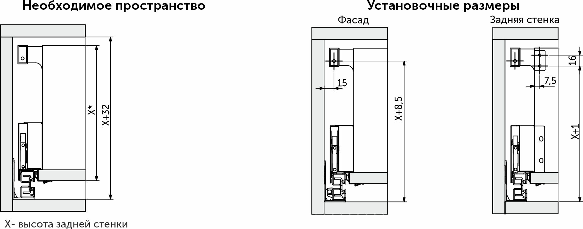 Прямоугольный продольный рейлинг предназначен для формирования выдвижного мебельного ящика любой желаемой высоты с прямыми боковинами.