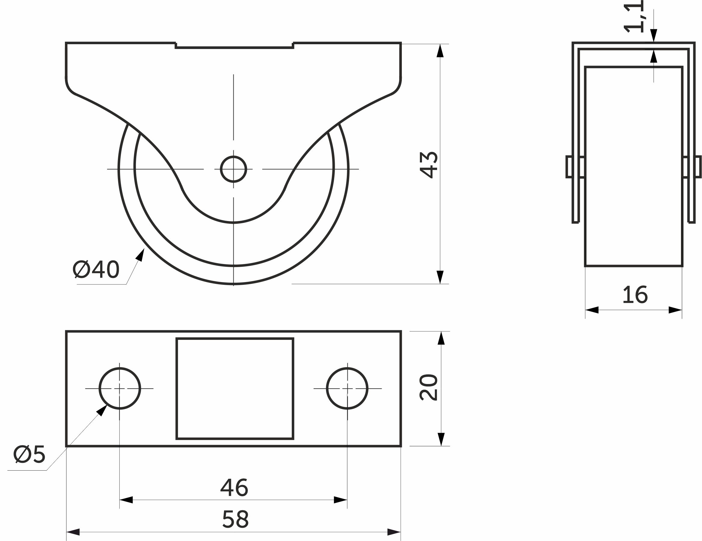 Ролик меб. c рез.ободом d40 h43 прямоходящий, черный AKS