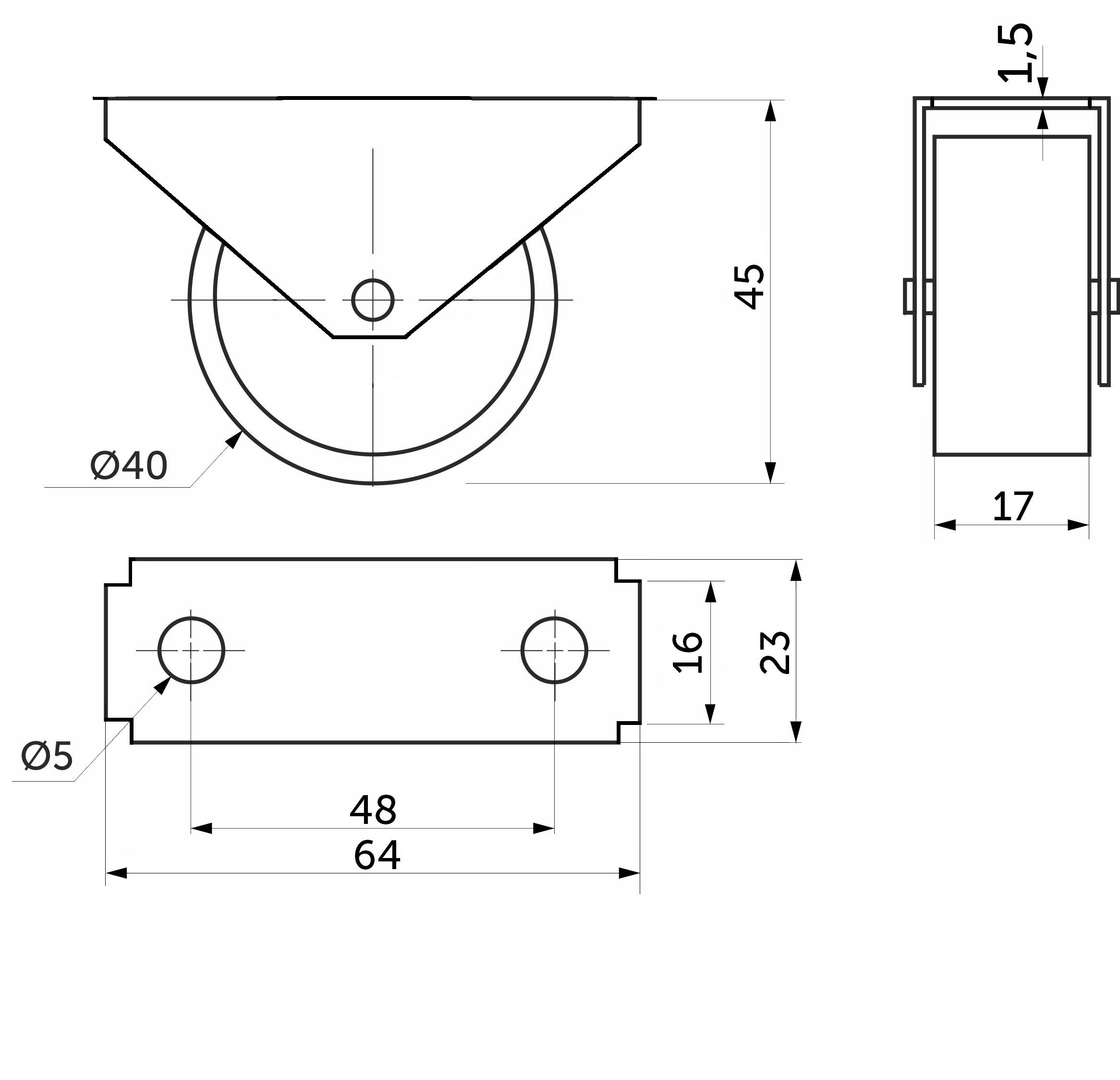 Ролик меб. c рез.ободом d40 h45 прямоходящий, серый РФ