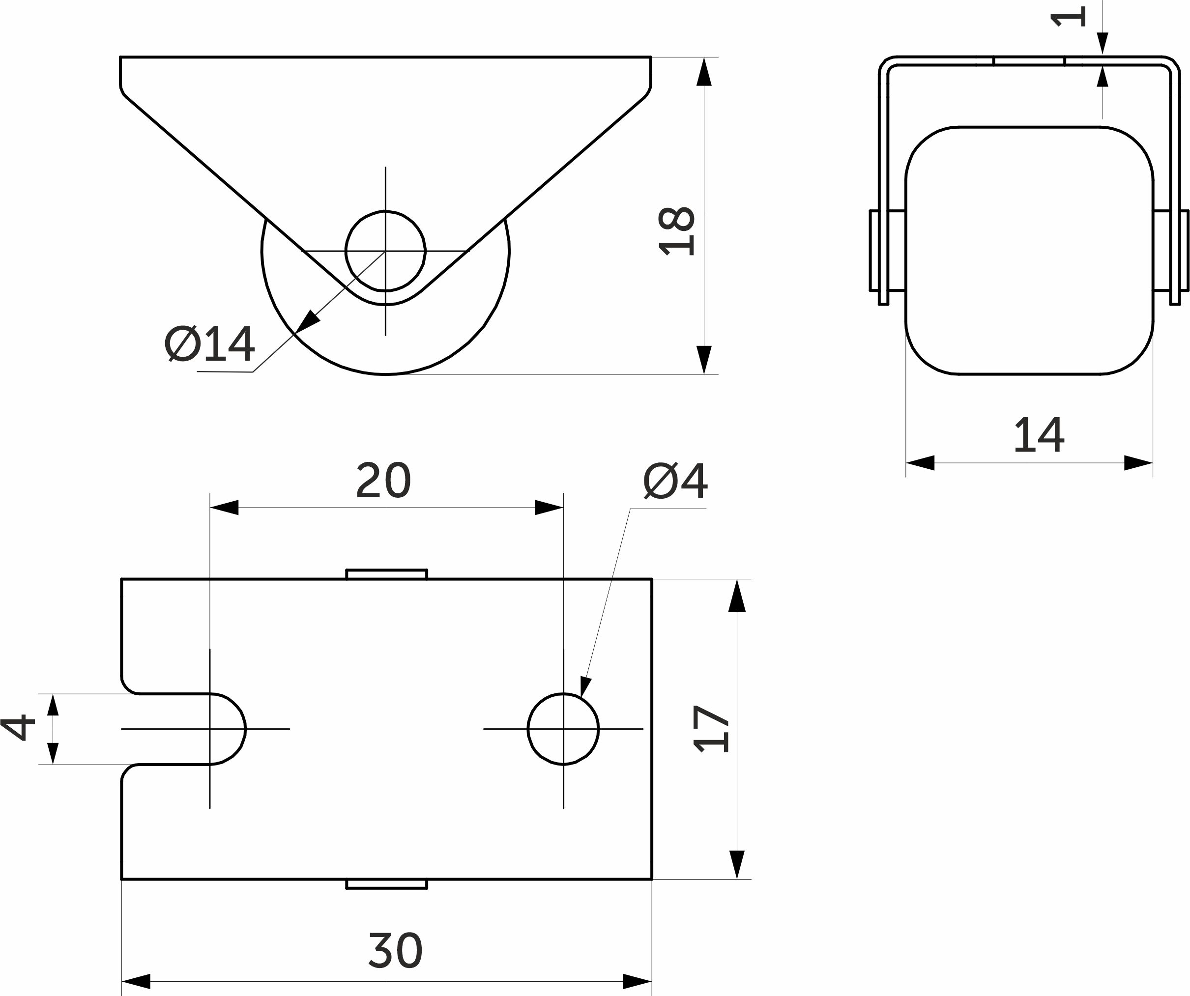 Ролик меб. d14 h18 прямоходящий, черный AKS