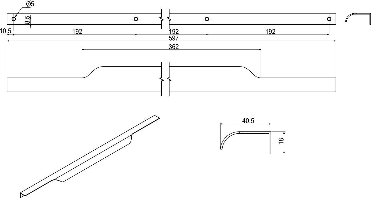 Ручка меб. накладная алюм. LINEA 576/597 алюминий, AKS
