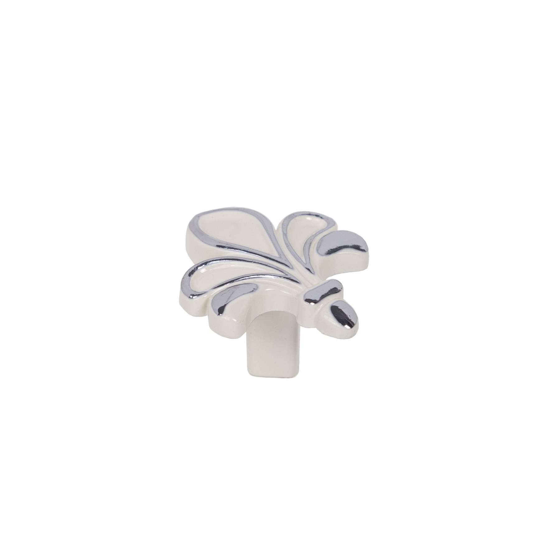 Ручка меб. кнопка мет. MILK серебро белый, AKS