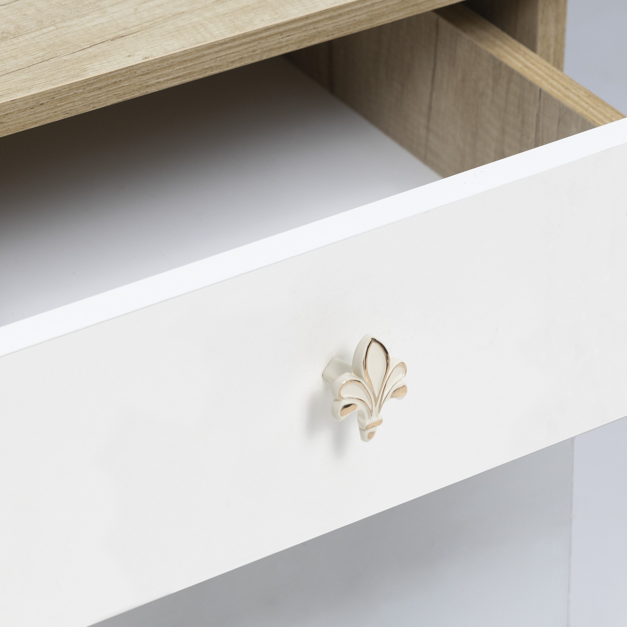 В форме ручки четко прослеживаются цветочные мотивы, а сочетание цветов белый-золото и белый-серебро создает эффект патинирования.