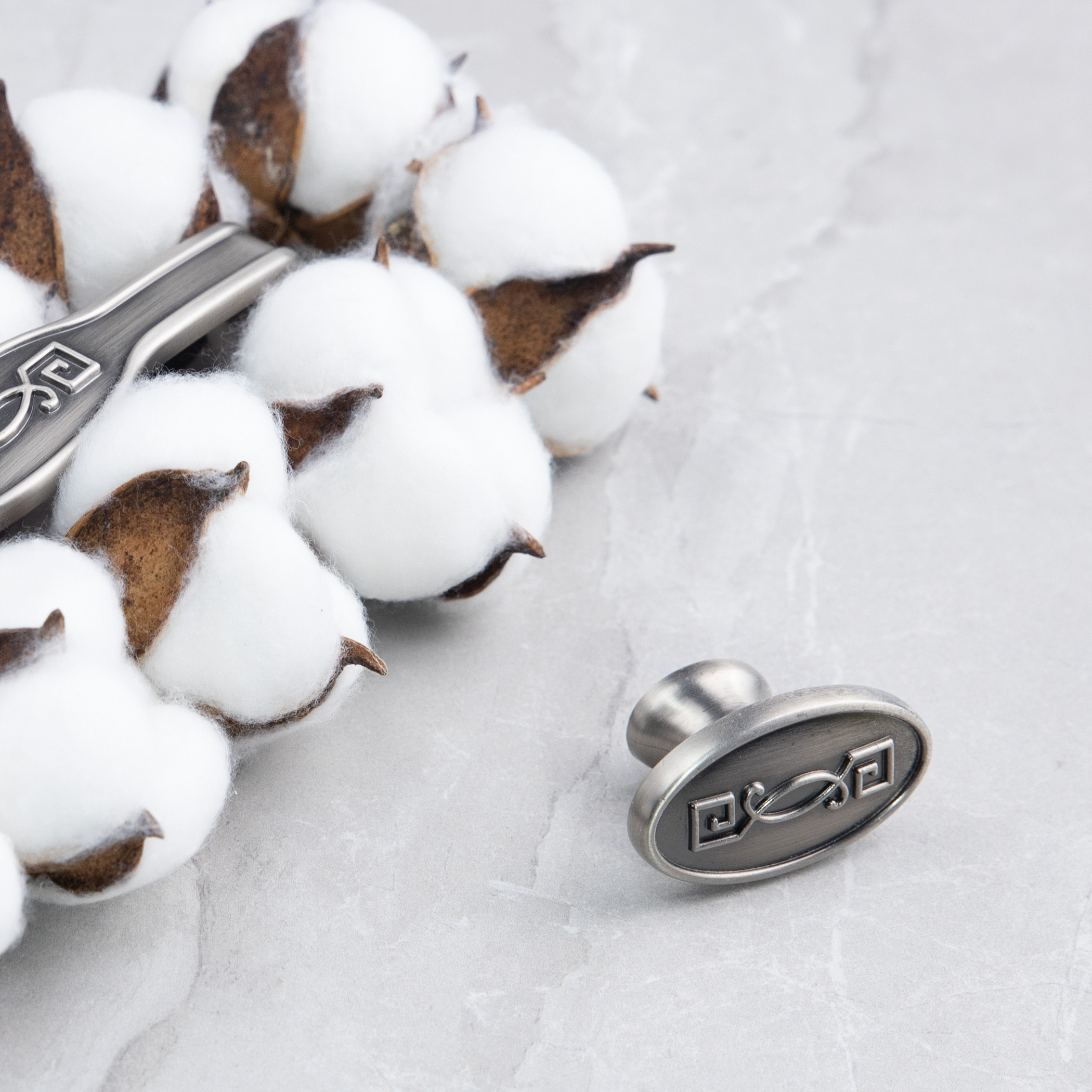 Ручка, которую хочется рассматривать, ручка, которой хочется касаться. Такой актуальный сейчас шлифованный никель и "мягкие" формы в сочетании с орнаментом сразу выделят её из ряда себе подобных.