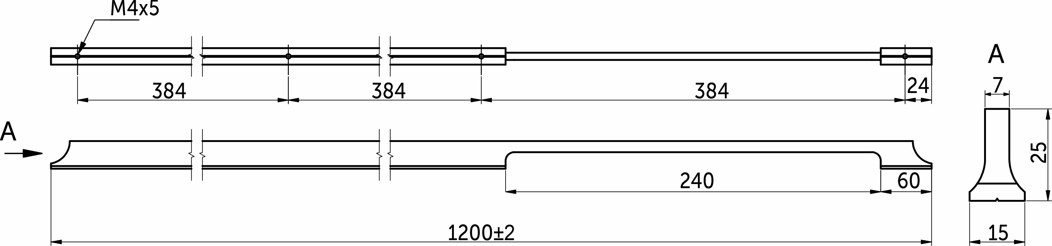 Ручка-скоба мебельная, общая длина 1200мм. Материал - алюминий. Цвет - никель матовый.