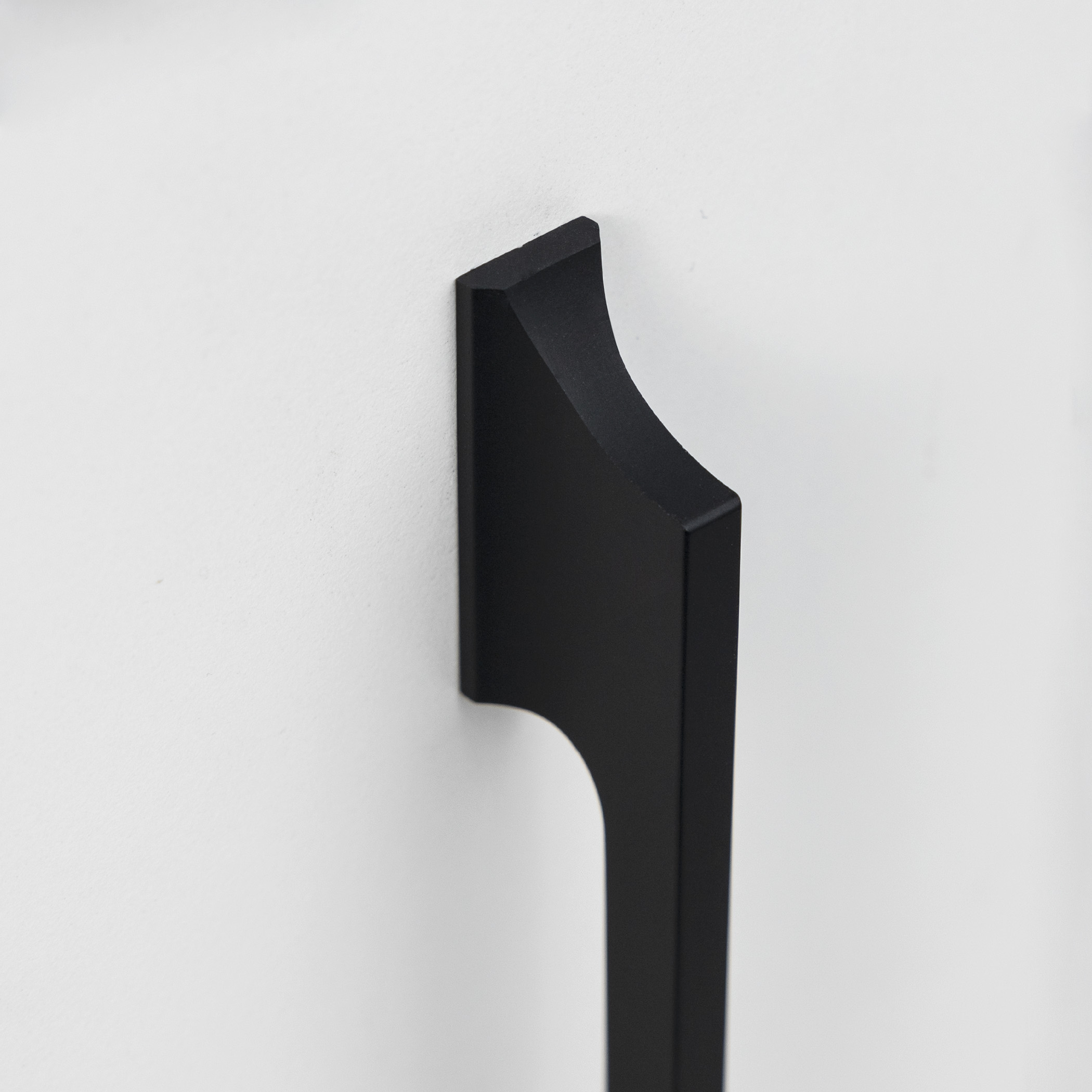 Ручка-скоба мебельная, размер 96 мм под сверление, общая длина 136мм. Материал - алюминий. Цвет - черный матовый.