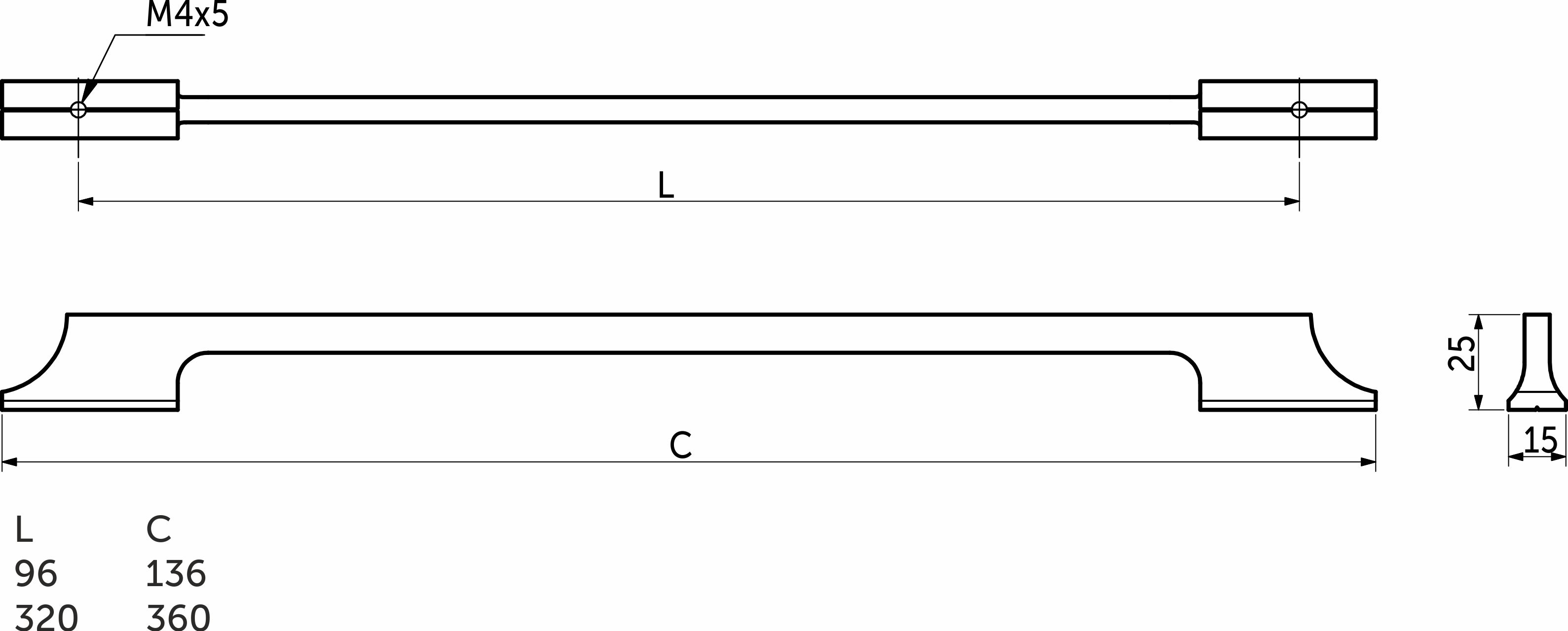 Ручка-скоба мебельная, размер 96 мм под сверление, общая длина 136мм. Материал - алюминий. Цвет - никель матовый.