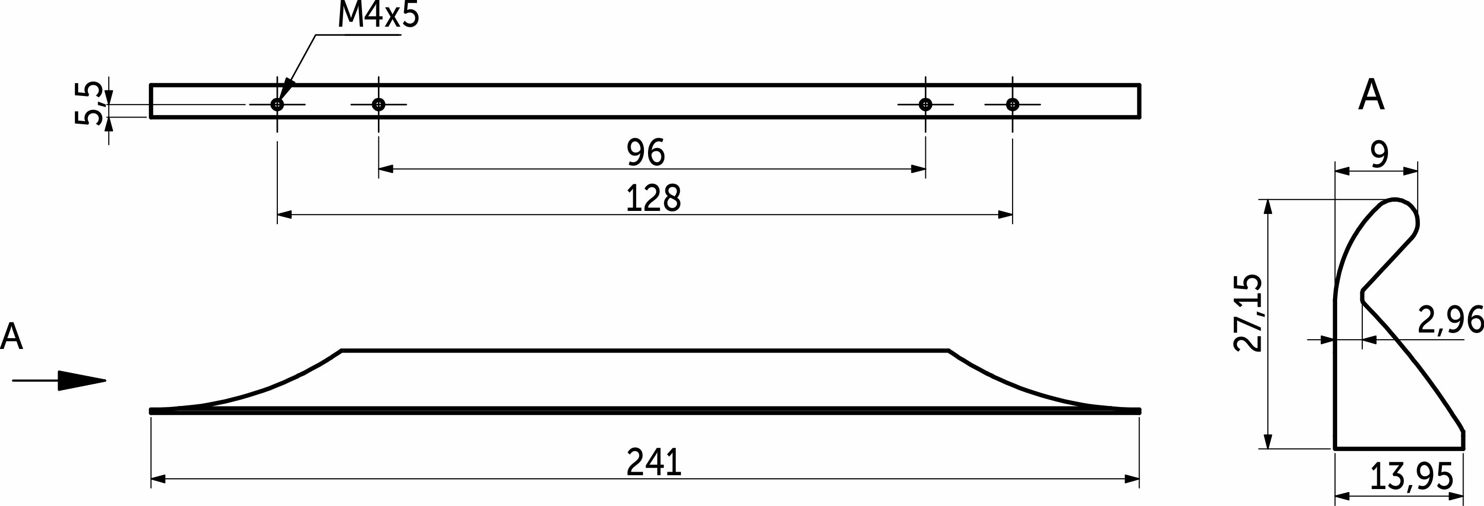 Размер 96 и 128 мм под сверление, общая длина 241мм.