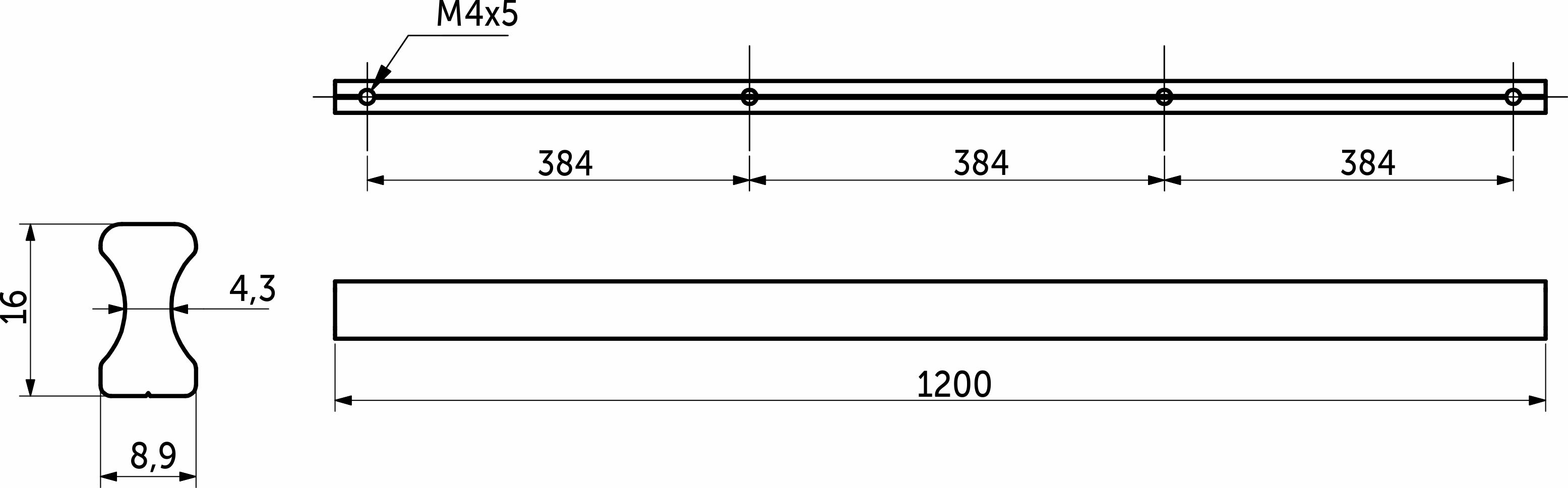 Размер 1152мм под сверление, общая длина 1200мм.