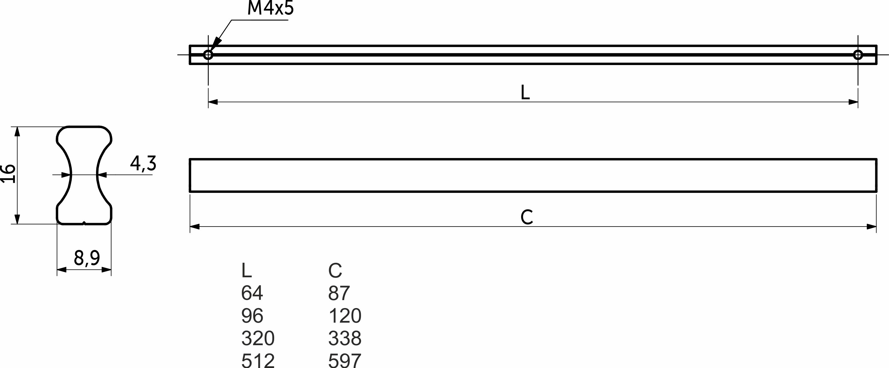 Ручка меб. скоба алюм. MELISA 288-320/352 черный матовый, AKS