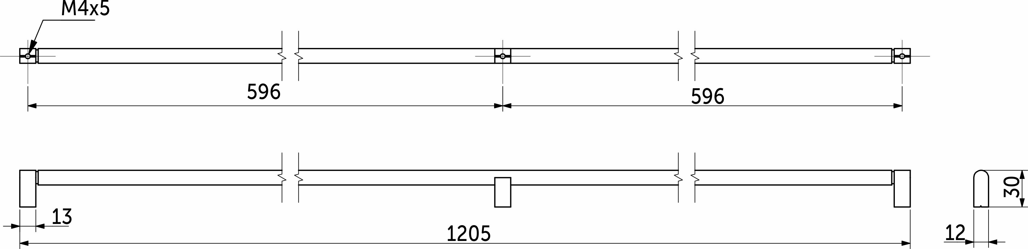Отличительная особенность - три ножки, шаг для сверления - 596мм, общая длина 1205 мм.