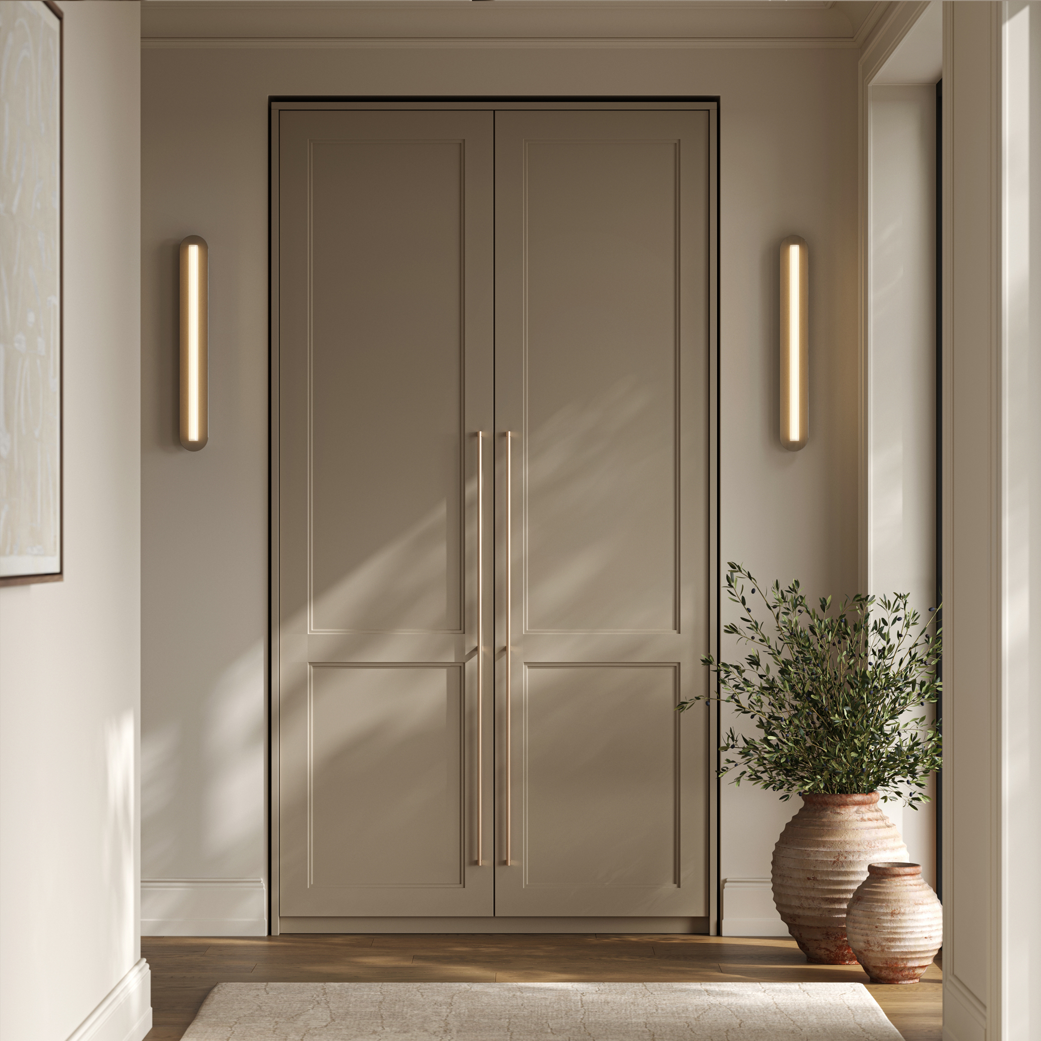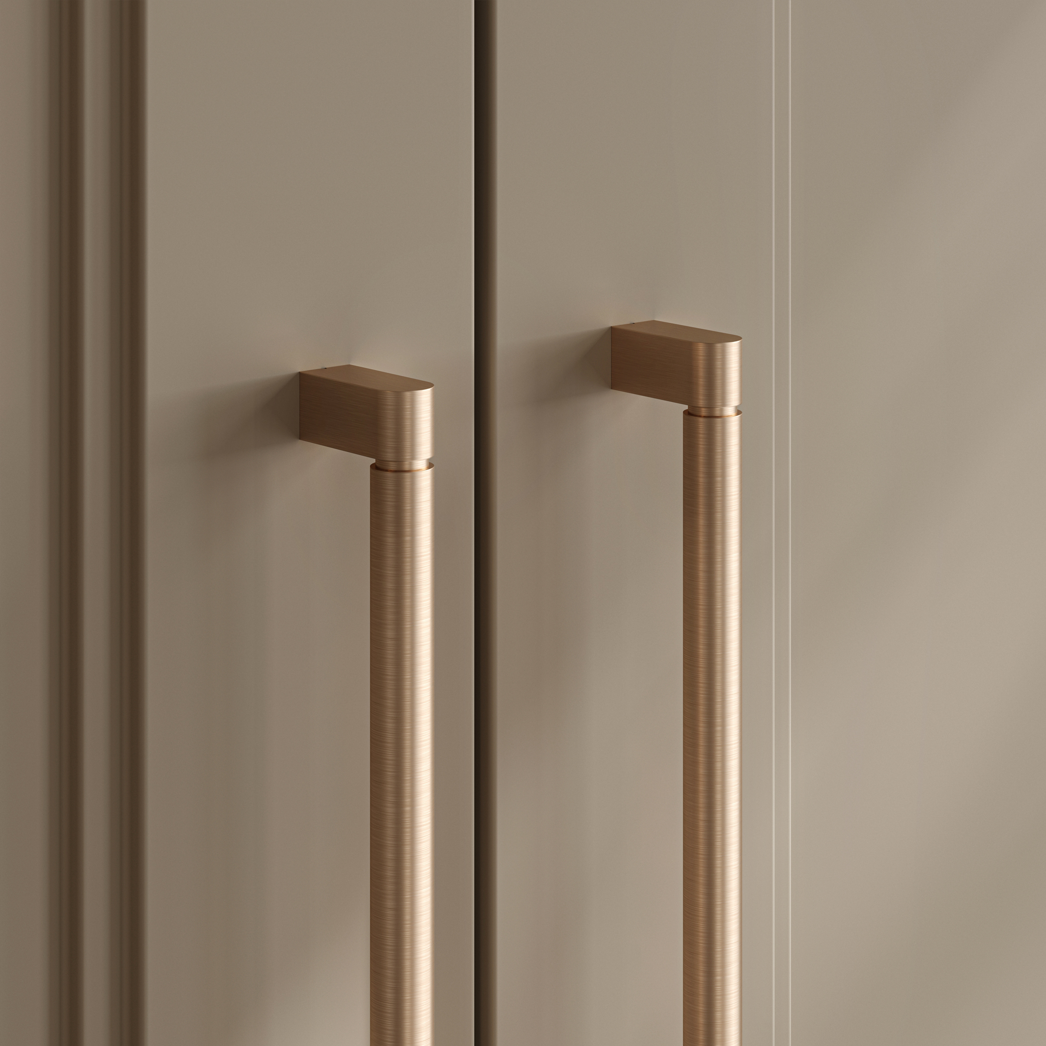 Отличный и строгий по форме вариант для фасадов шкафа с дополнительной перемычкой, которая придаёт надежности креплению. Тот случай, когда стиль скрывается в лаконичности.
