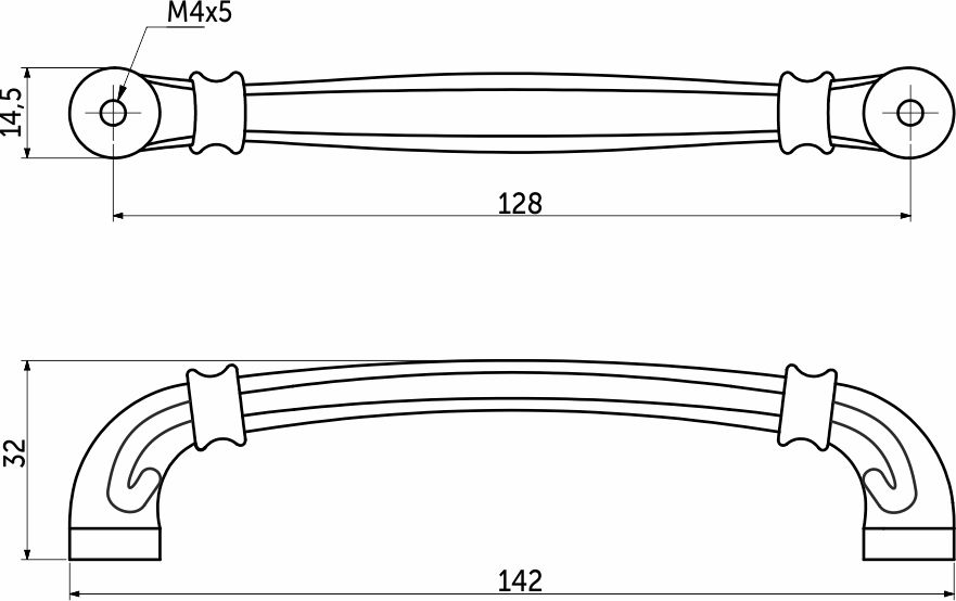 Ручка меб. скоба мет. EVA 128 античное серебро, AKS