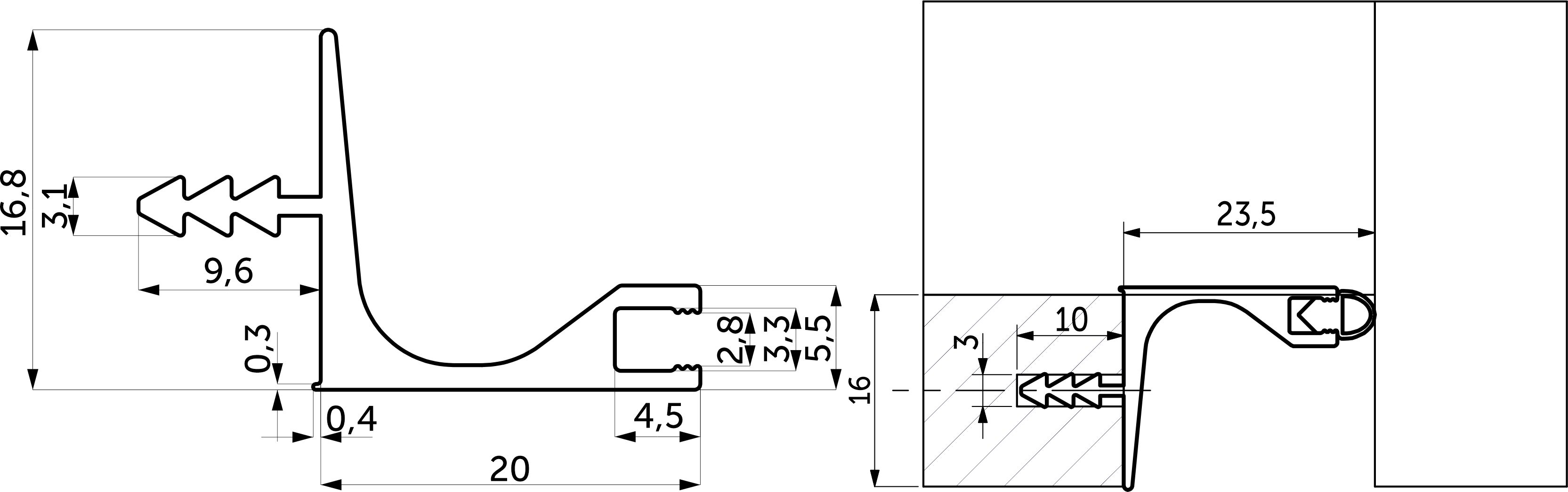 Ручка-профиль алюм. врезная L-образная MOON-16, 3.5м, анодированный черный AKS
