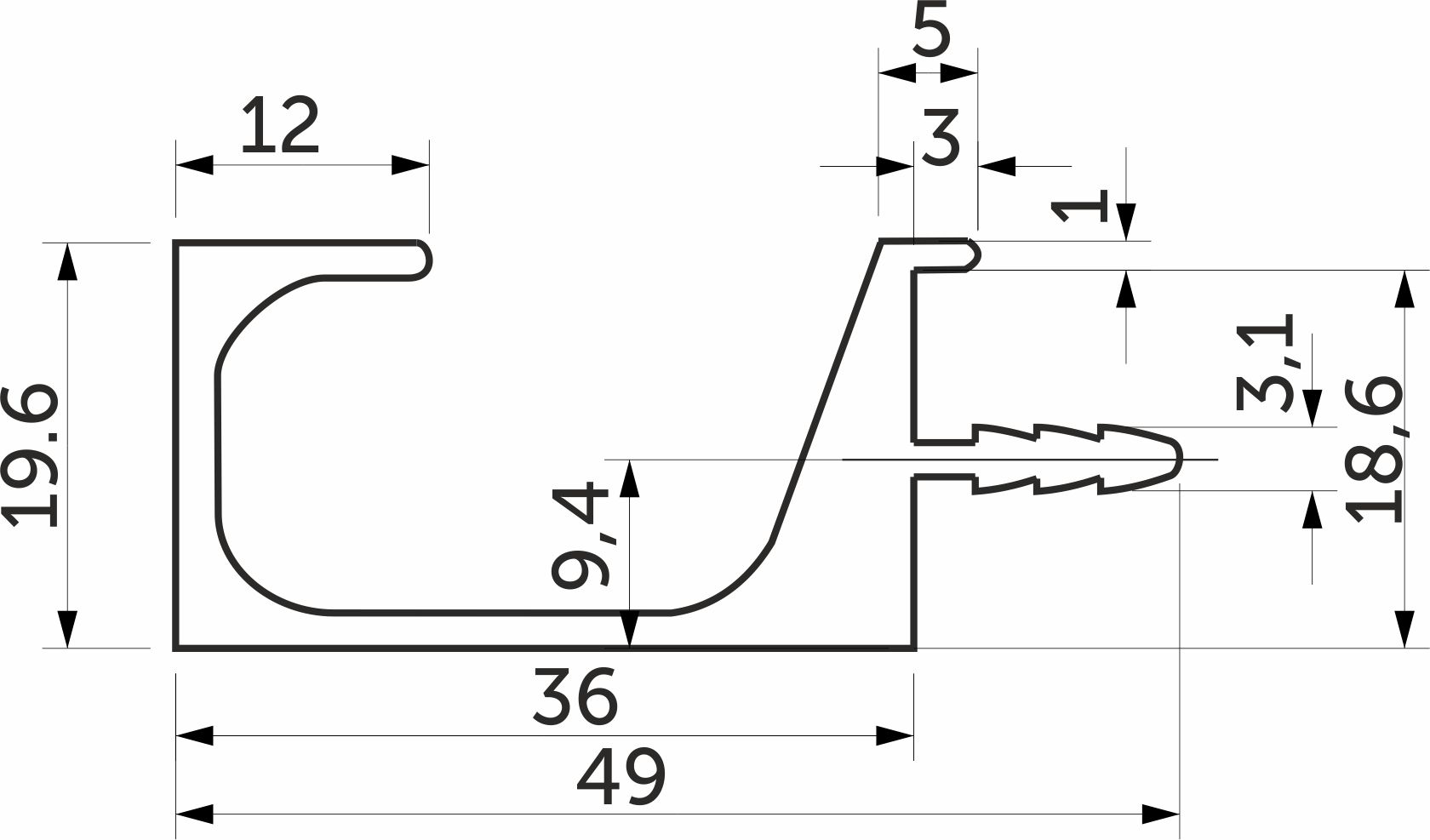 Ручка-профиль алюм. врезная C-образная, 3.5м, анода натуральная AKS