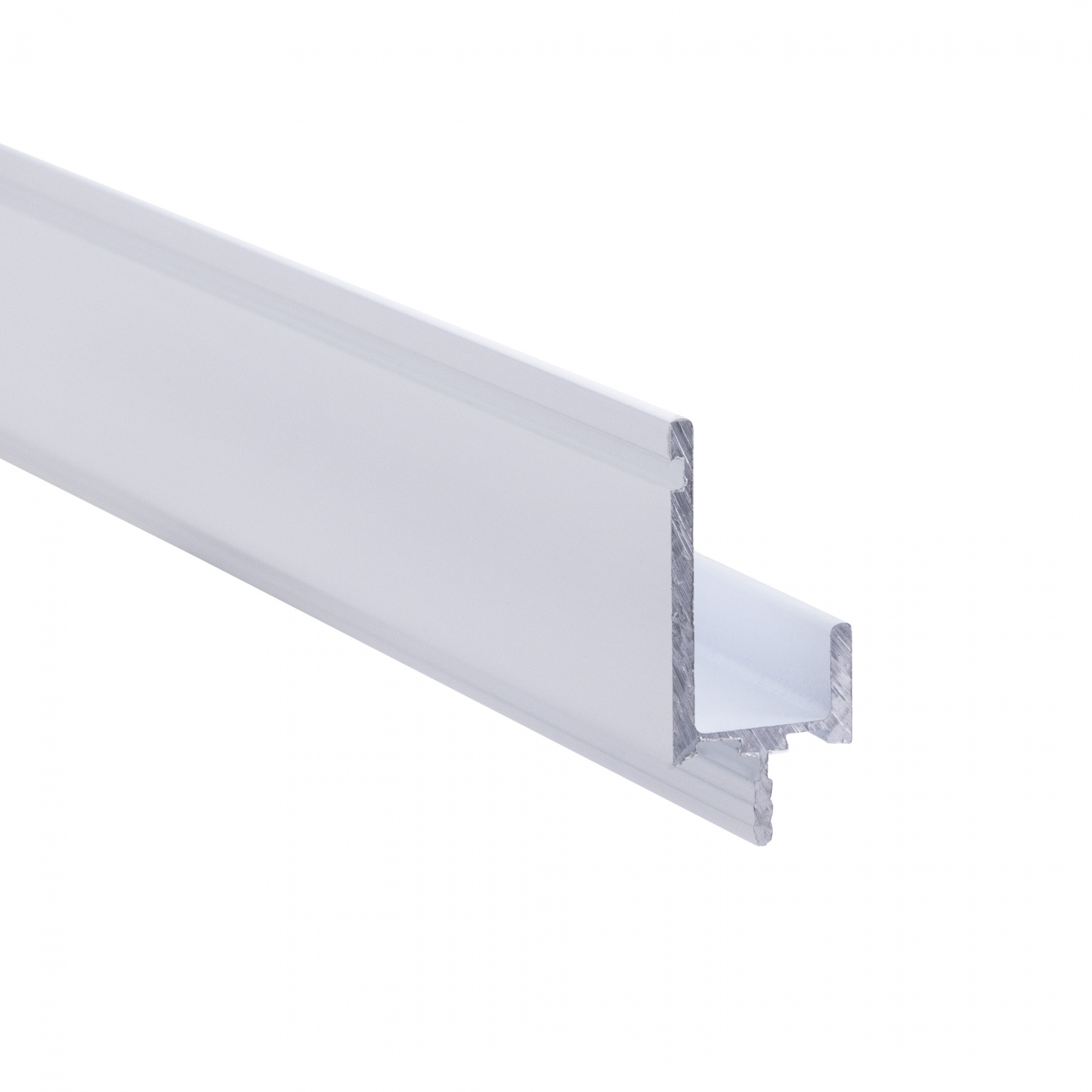 Алюминиевая ручка-профиль, врезная, L-образная, под толщину ДСП 18мм, общая длина 4м (полезная длина профиля 3,95м), цвет белый, покраска.