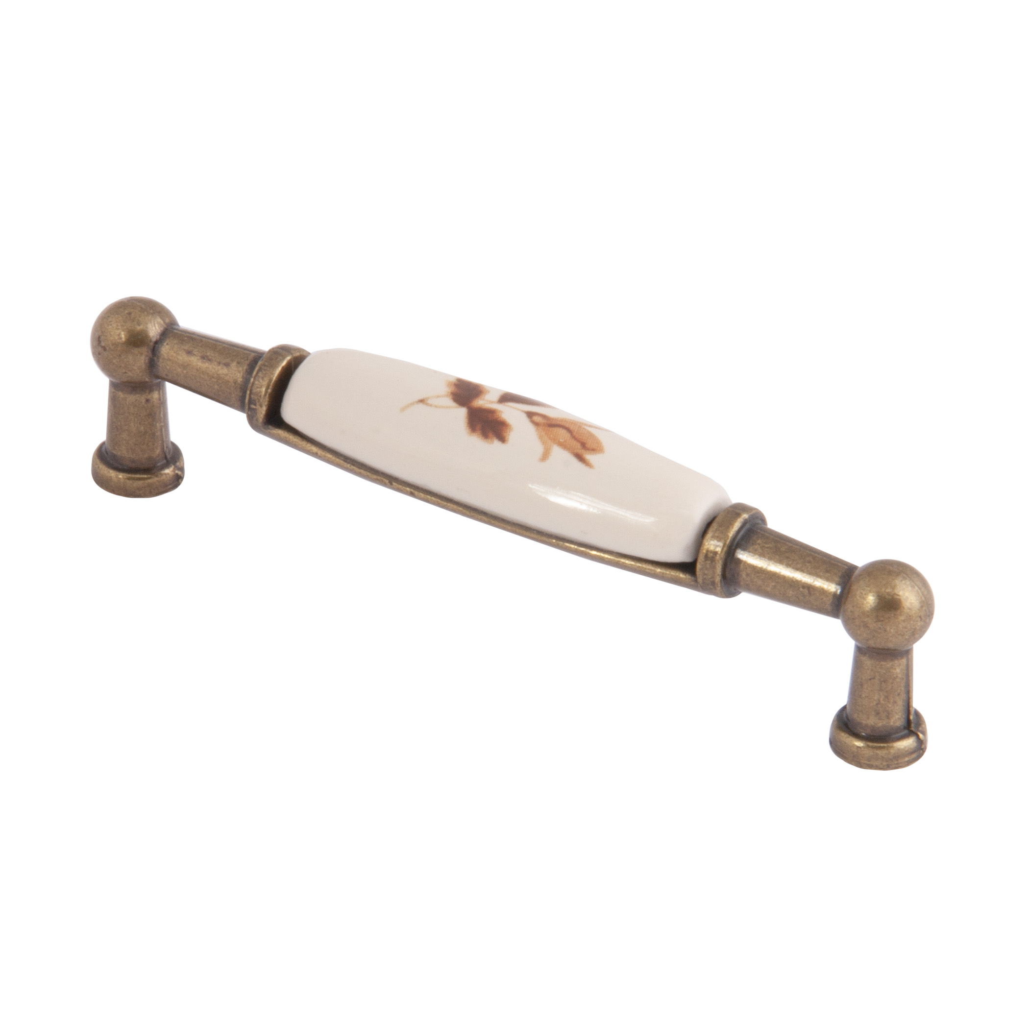 Ручка меб. скоба мет. UP21 с керам. вставкой (крем) 96 старое золото/коричневый лист AKS тип 2