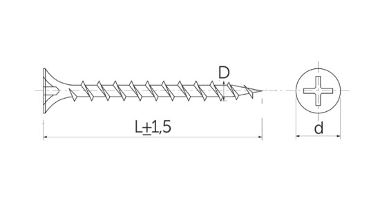Саморезы для гипсокартона для крепления к дереву имеют крупный шаг резьбы и шлиц PH.