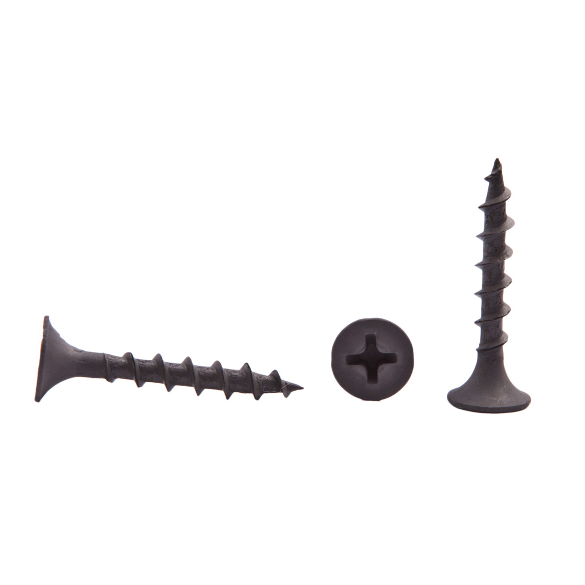 Материал покрытия стальных стержней саморезов для гипсокартона - фосфатное (черные).