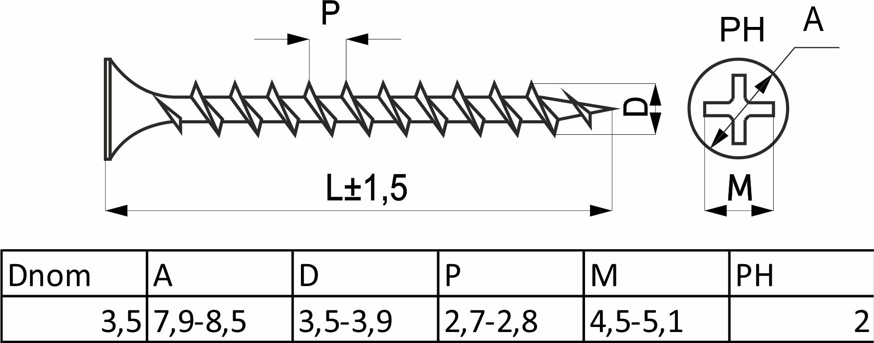 В настоящее время самыми популярными в мебельном производстве являются саморезы для гипсокартона диаметром 3.5, 3.9 и 4.2 мм. Длины саморезов могут варьироваться от 16 до 90 мм.