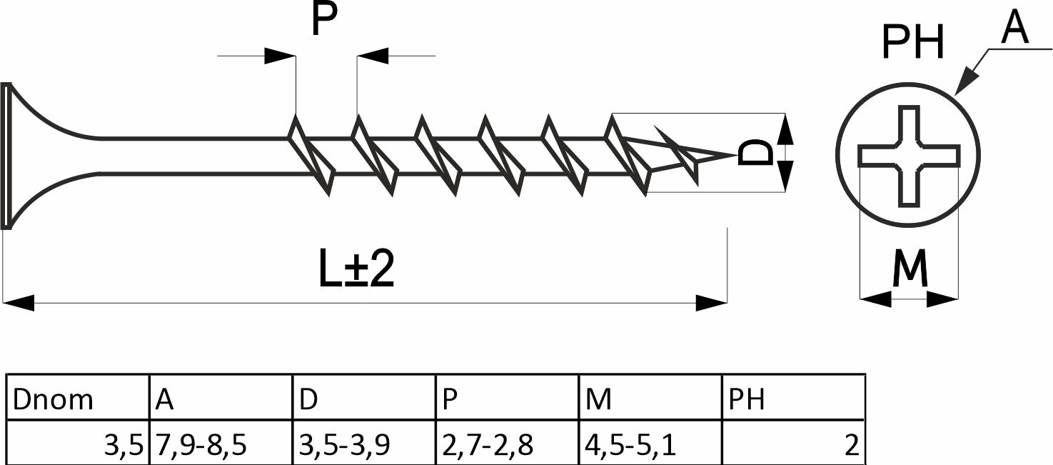 Саморез для гипсокартона 3,5*51 крупный шаг (уп/0,5тыс.шт) AKS