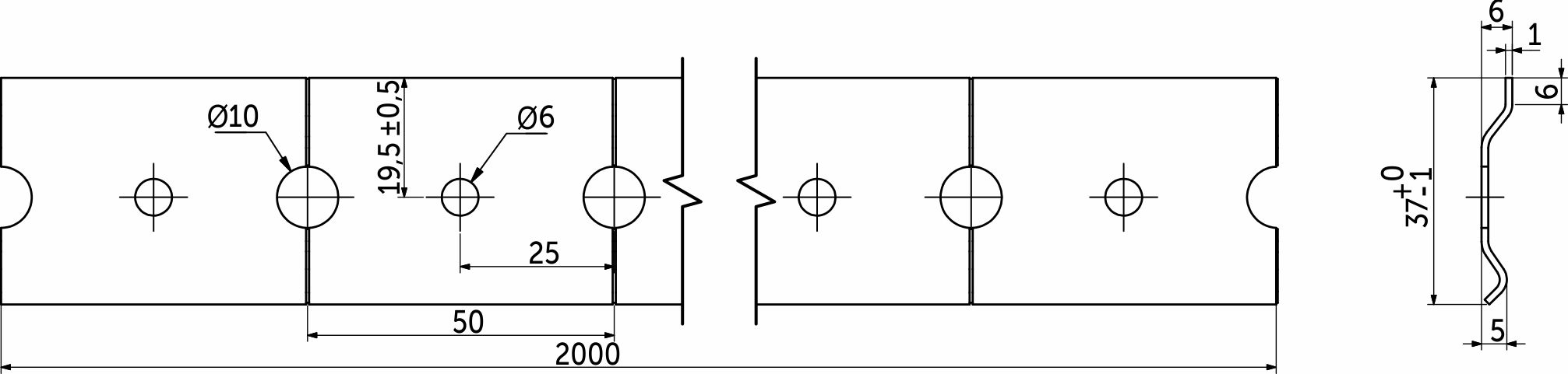 Монтажная шина (рейка) для навесов предназначен для крепления ящиков верхнего яруса к стене с помощью различных типов навесов. Стандартная длина шины 2000 мм, но также применяются шины длиной 60, 80 и 100 мм. Шину можно монтировать как целиком, так и разрезая по необходимым размерам. Толщина металла у данной шины может быть 1.0, 1.2, 1.5 и 2,0 мм. Код 70 344 - облегченная