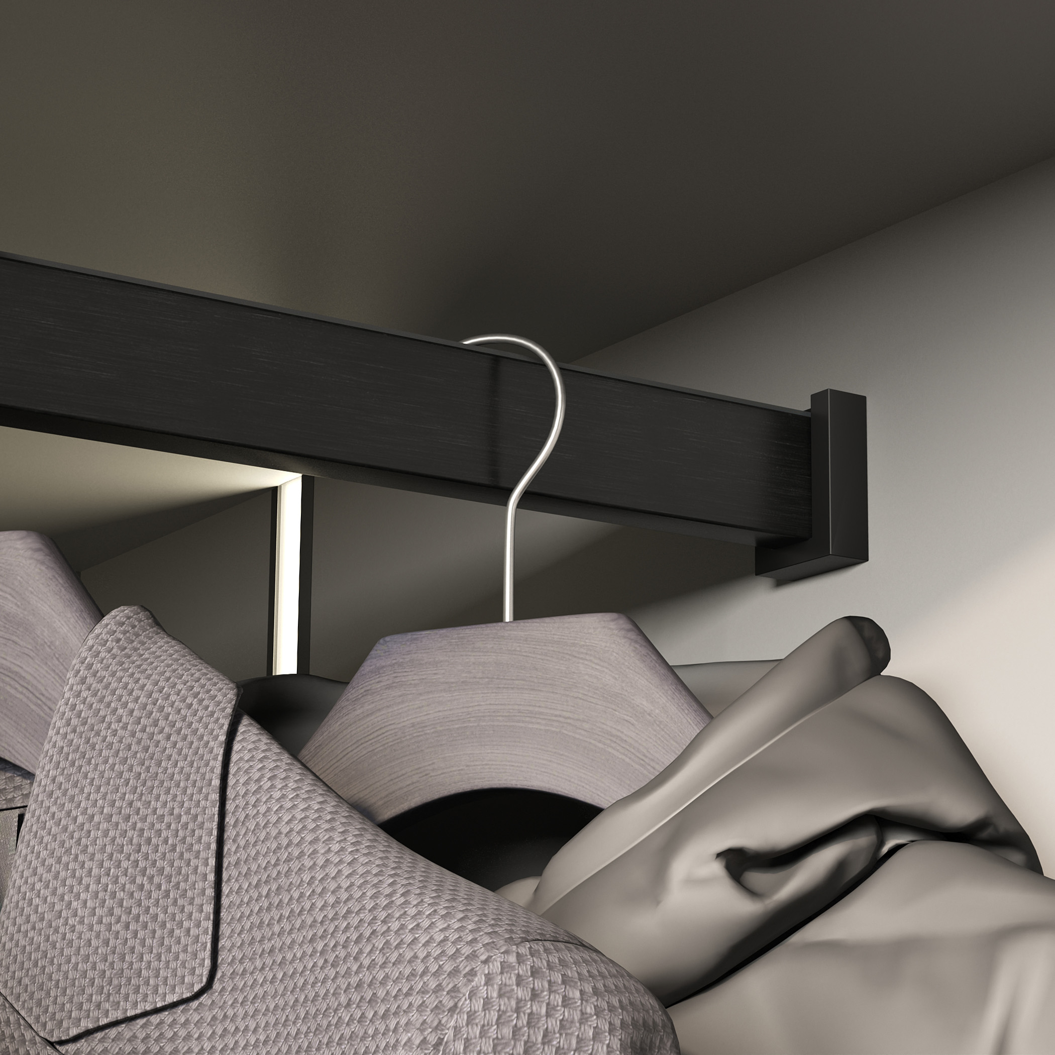 Наличие демпфера предотвращает шумное движение вешалок-плечиков и защищает штангу от царапин, толщина стенки 0,9 мм.