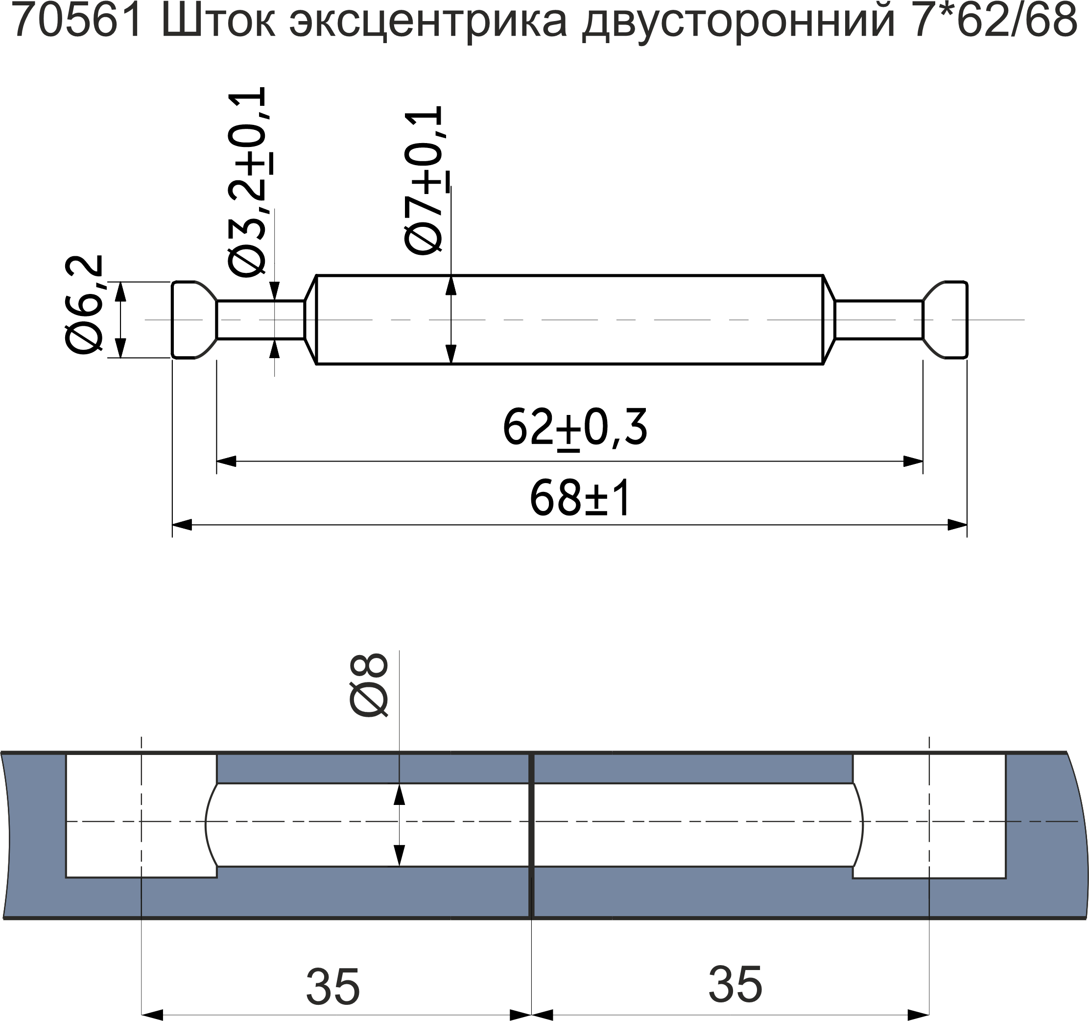 Шток эксцентрика двусторонний 7*62/68 для плиты 16мм (уп/ 1 тыс.шт.) РП