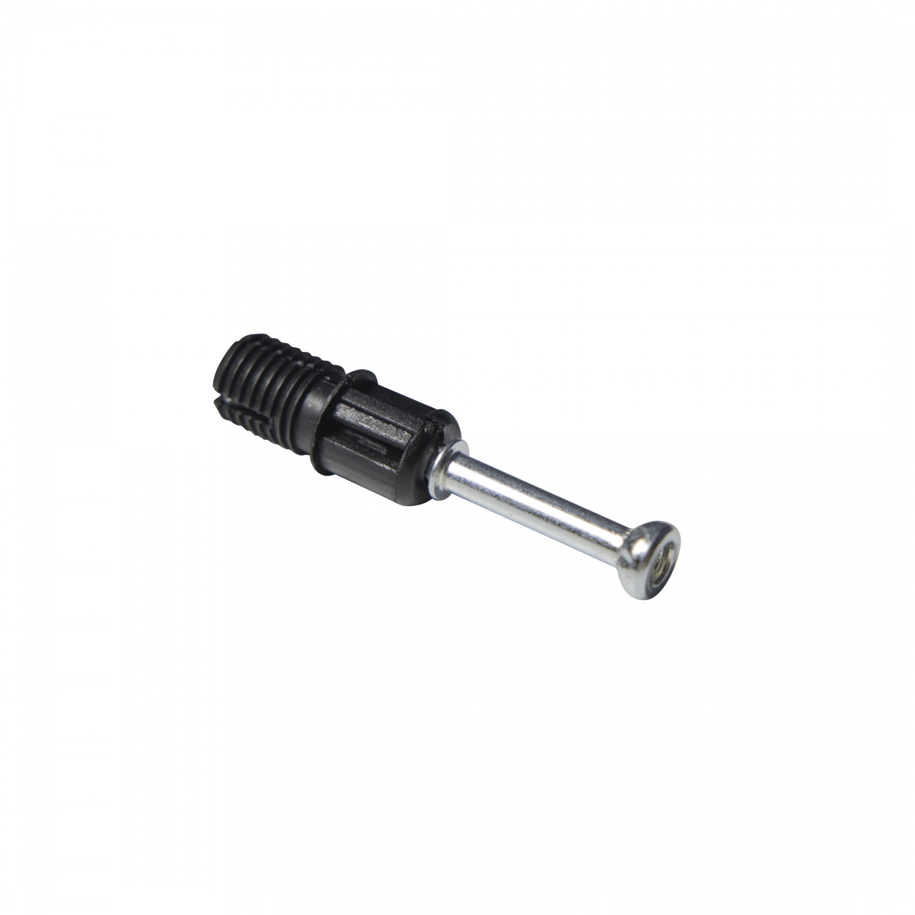 Распорный или забивной шток эксцентрика (шпилька) является составной частью эксцентриковой стяжки и подходит для всех эксцентриков (бочонков) диаметром 12 и 15 мм любой высоты от 10 мм до 17 мм. Данный тип штока имеет 2 основных вида согласно установочному размеру: 34 мм (более популярный) и 24 мм. Также распорная муфта данного штока может быть 2 размеров - 8 мм и 10 мм. Данный тип соединения обеспечивает прочное и надежное соединение деталей на разрыв и позволяет многократно выполнять сборку и разборку мебели.