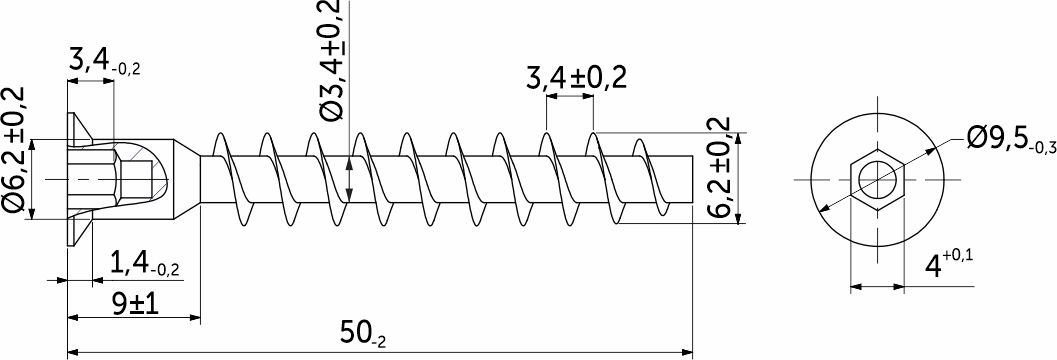 Самый популярный вид мебельного соединения (также его называют евро-винт, евро-шуруп или евро-стяжка). Данное изделие может иметь разную форму шляпки или шлиц - чаще всего используется шестигранник, но встречается и под крест PZ. Конфирматы имеют много видов и размеров, но самыми популярными являются конфирматы диаметром 7 мм (более характерен для рынка Беларуси) и 6.3 мм (данный формат повсеместно используется в России). По длине самым ходовым размером для конфирмата является 50 мм. Используют также конфирмат длиной 70 мм – для толстых боковин (например 28 ДСП) либо как реанимационное соединение, если конфирмат меньшей длины прокручивается по каким-либо причинам.