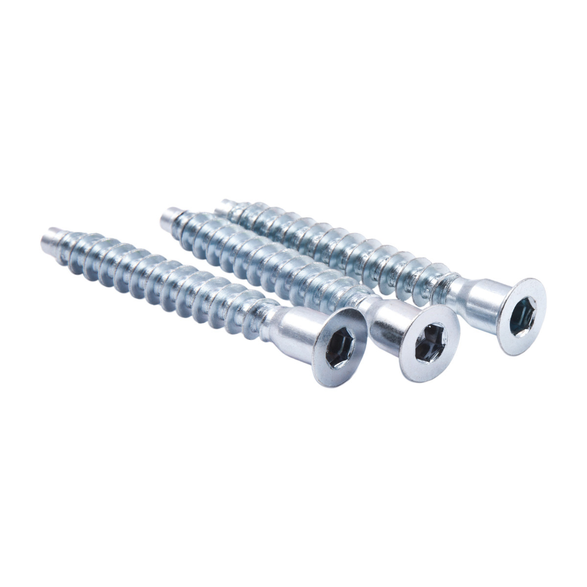 Самый популярный вид мебельного соединения (также его называют евро-винт, евро-шуруп или евро-стяжка). Данное изделие может иметь разную форму шляпки или шлиц - чаще всего используется шестигранник, но встречается и под крест PZ. Конфирматы имеют много видов и размеров, но самыми популярными являются конфирматы диаметром 7 мм (более характерен для рынка Беларуси) и 6.3 мм (данный формат повсеместно используется в России). По длине самым ходовым размером для конфирмата является 50 мм. Используют также конфирмат длиной 70 мм – для толстых боковин (например 28 ДСП) либо как реанимационное соединение, если конфирмат меньшей длины прокручивается по каким-либо причинам.